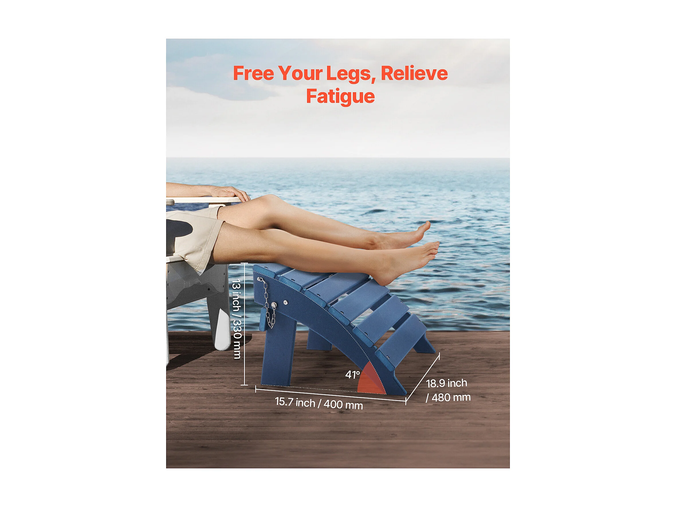 Pouf de Jardin, SucceBuy Pouf Adirondack Pliable en PEHD 47 x 47 x 35 cm, Repose-pieds Résistant aux Intempéries pour Chaise Adirondack, Bleu