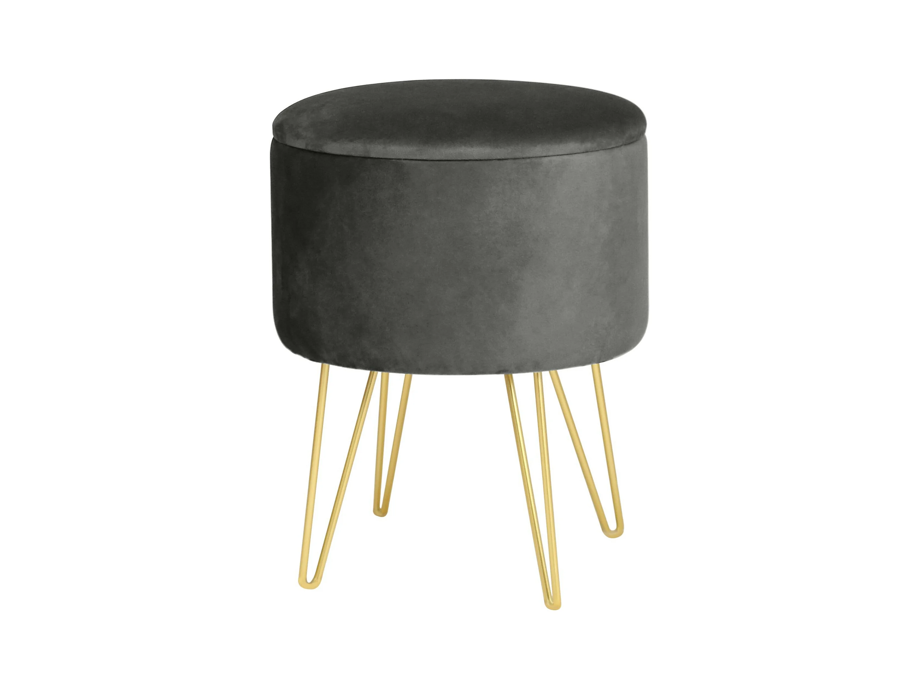 Pouf rond velours gris et pied métal doré mat Kila 39cm