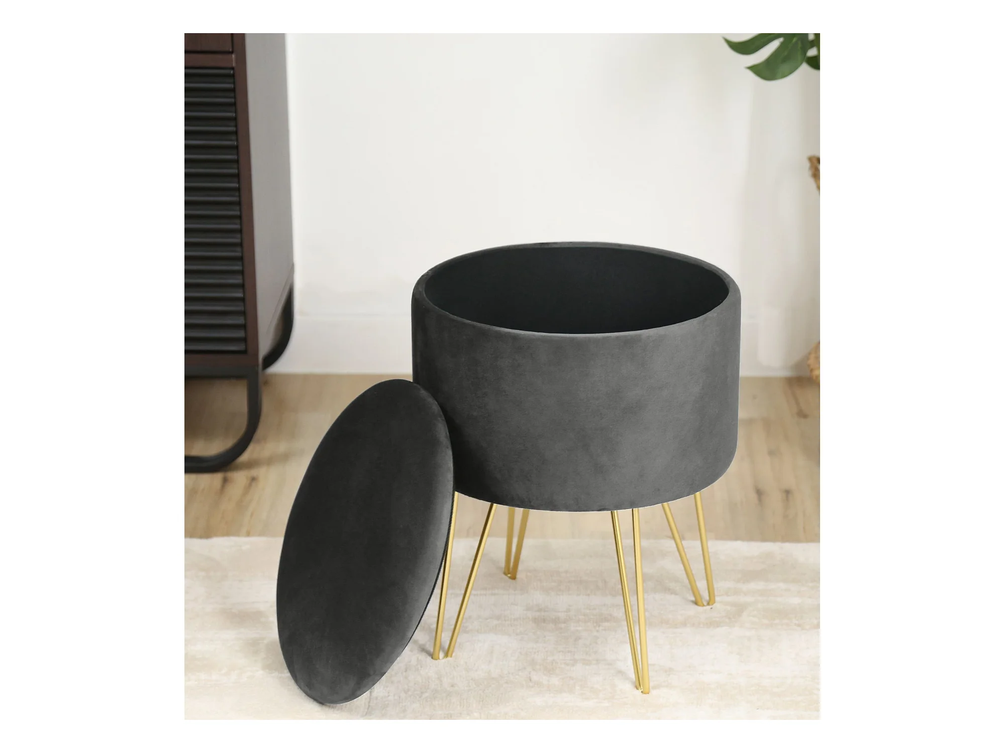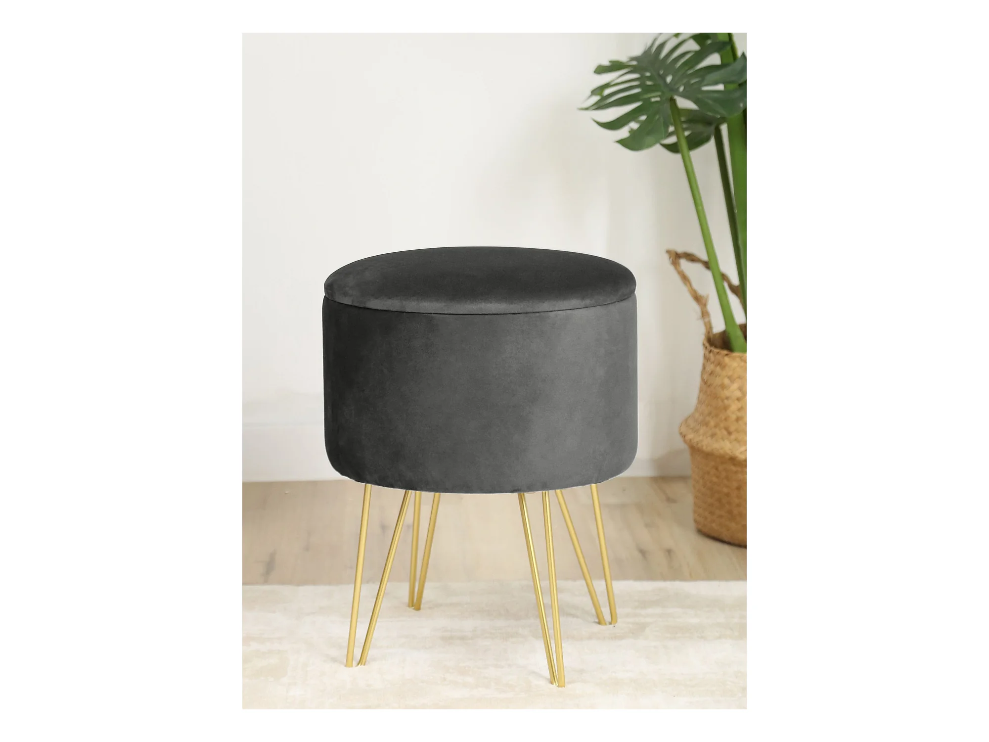 Pouf de Rangement avec Couvercle AKORD LILI velour colour Gris hauteur 45 cm