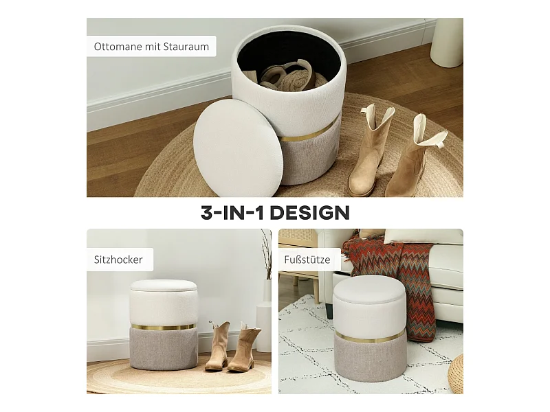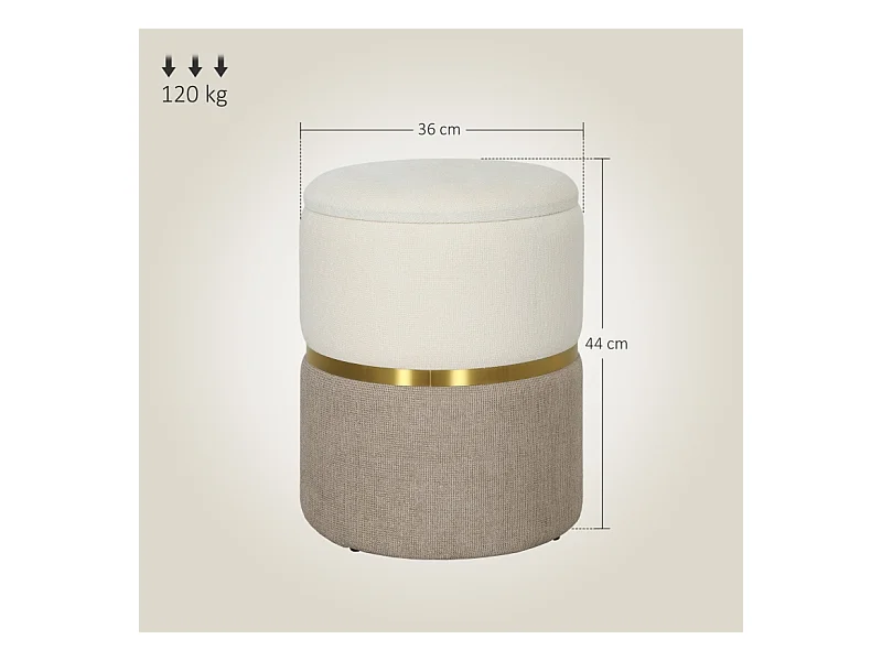 Pouf de rangement, avec couvercle, métal, design bicolore, crème et blanc (36x36x44 cm)