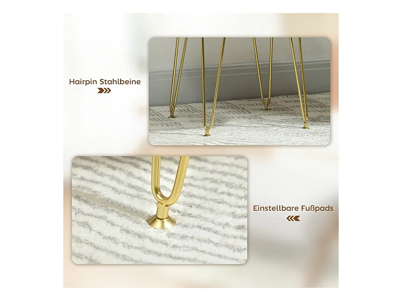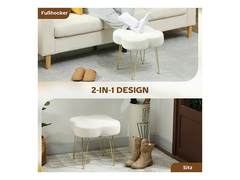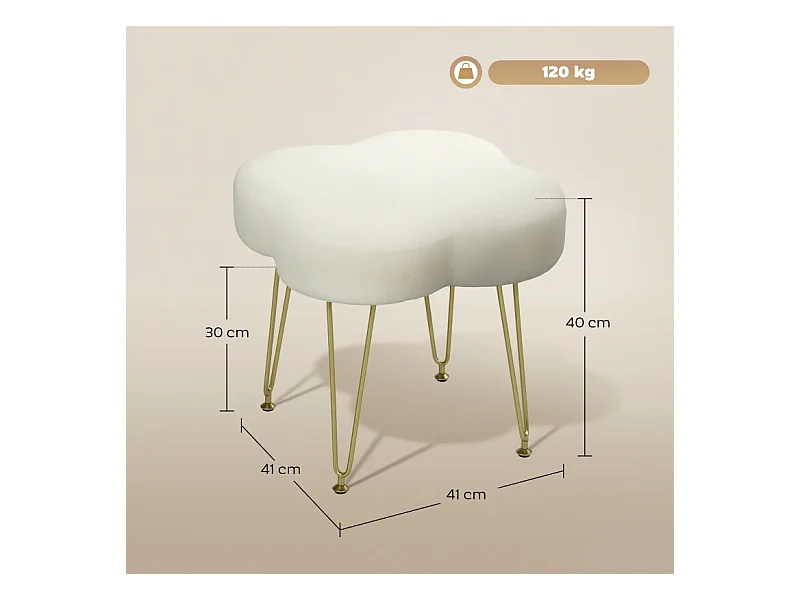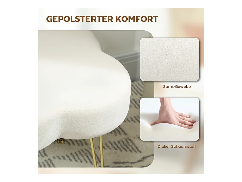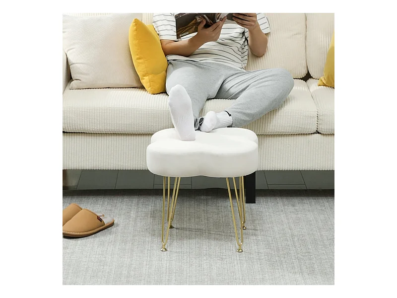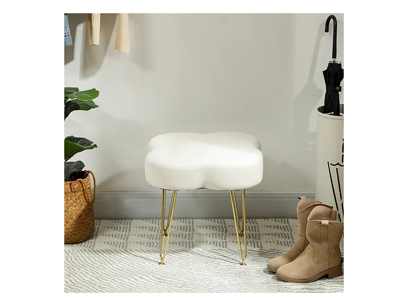 Pouf en forme de trèfle, tissu, pieds en métal, crème (36x36x40 cm)