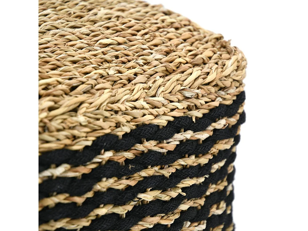 Pouf rond en jute, fines rayures blanches D40 cm - Billy