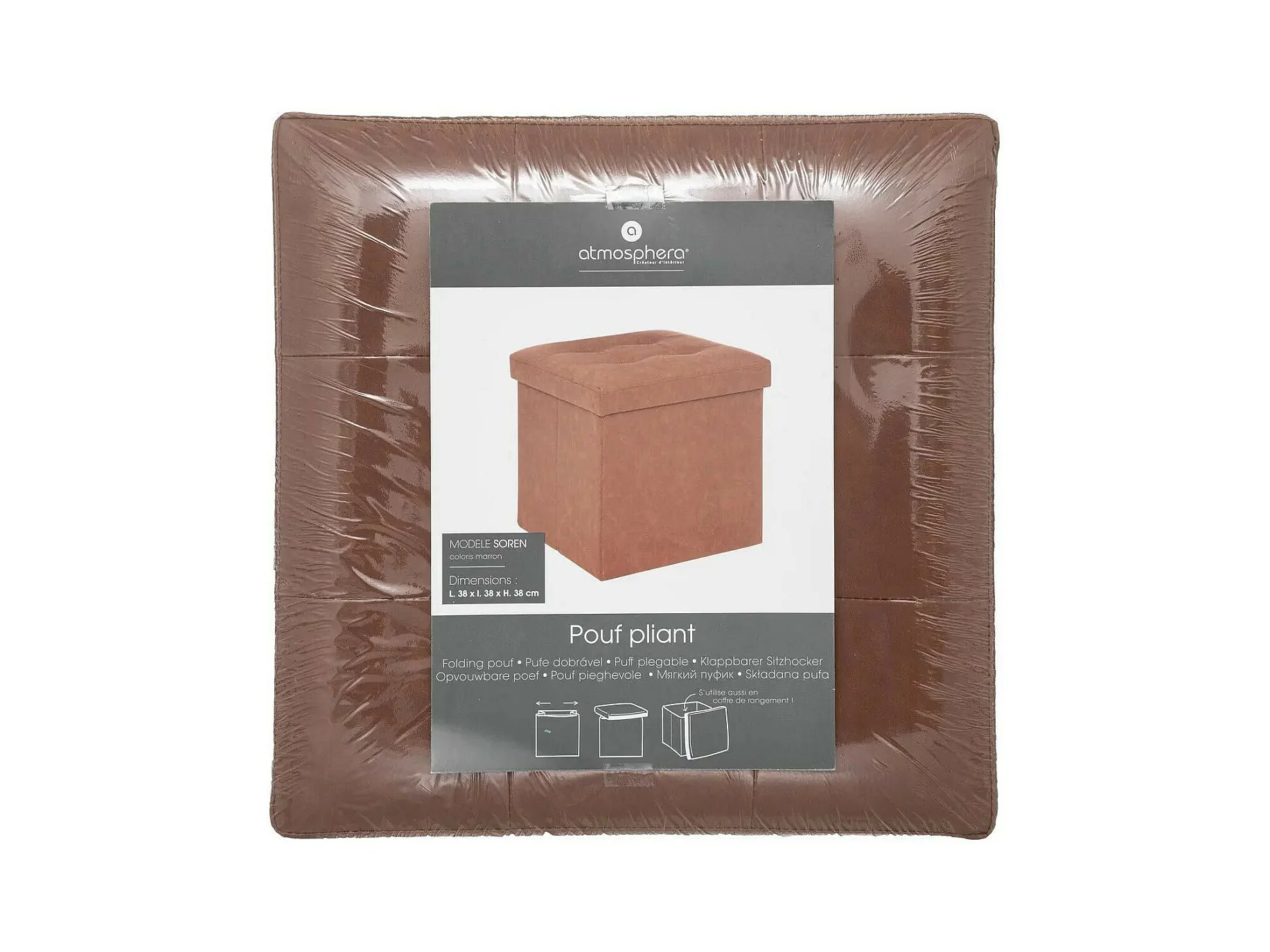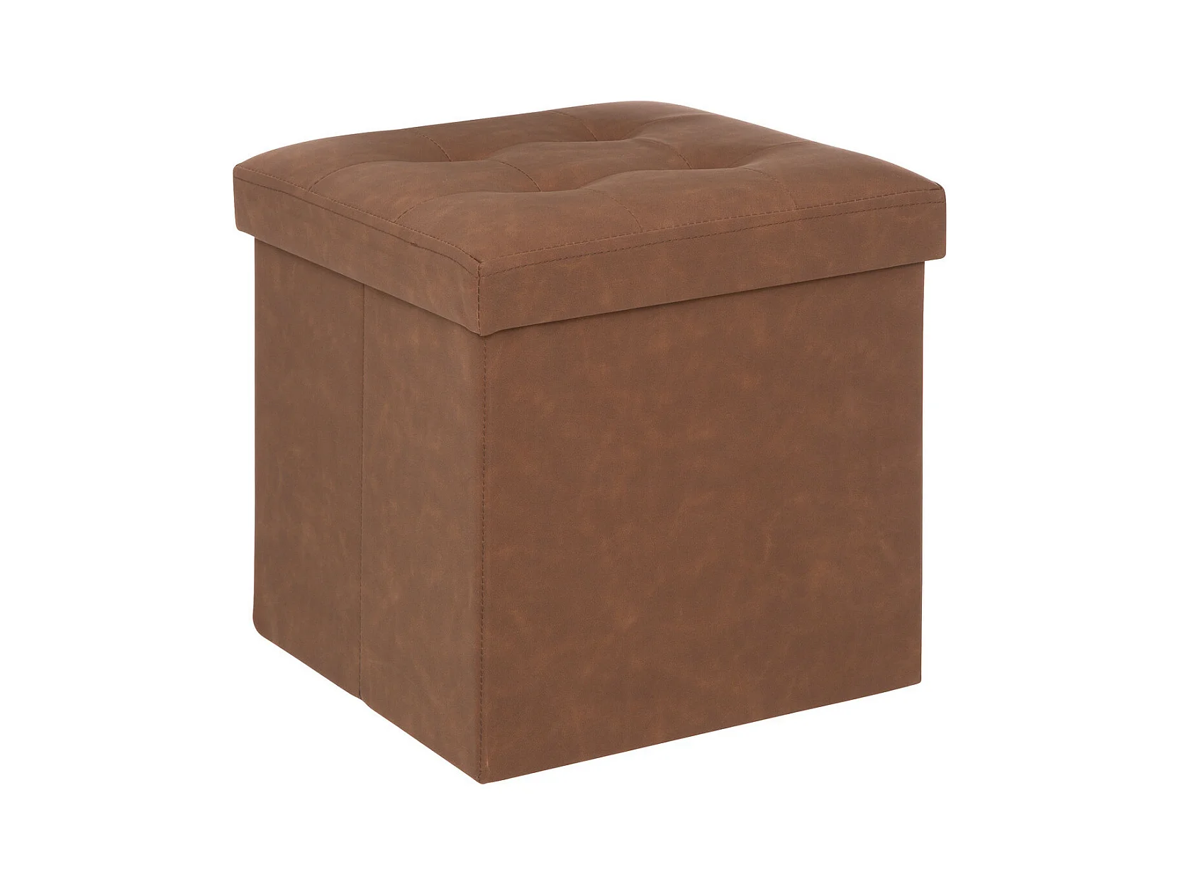 Pouf et Coffre de rangement en bois et revêtement Marron 38 x 38 cm