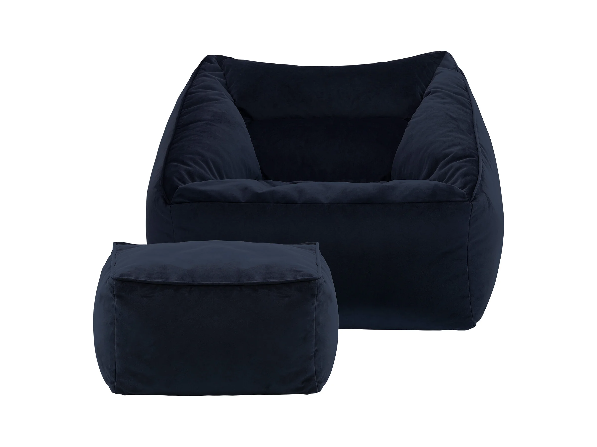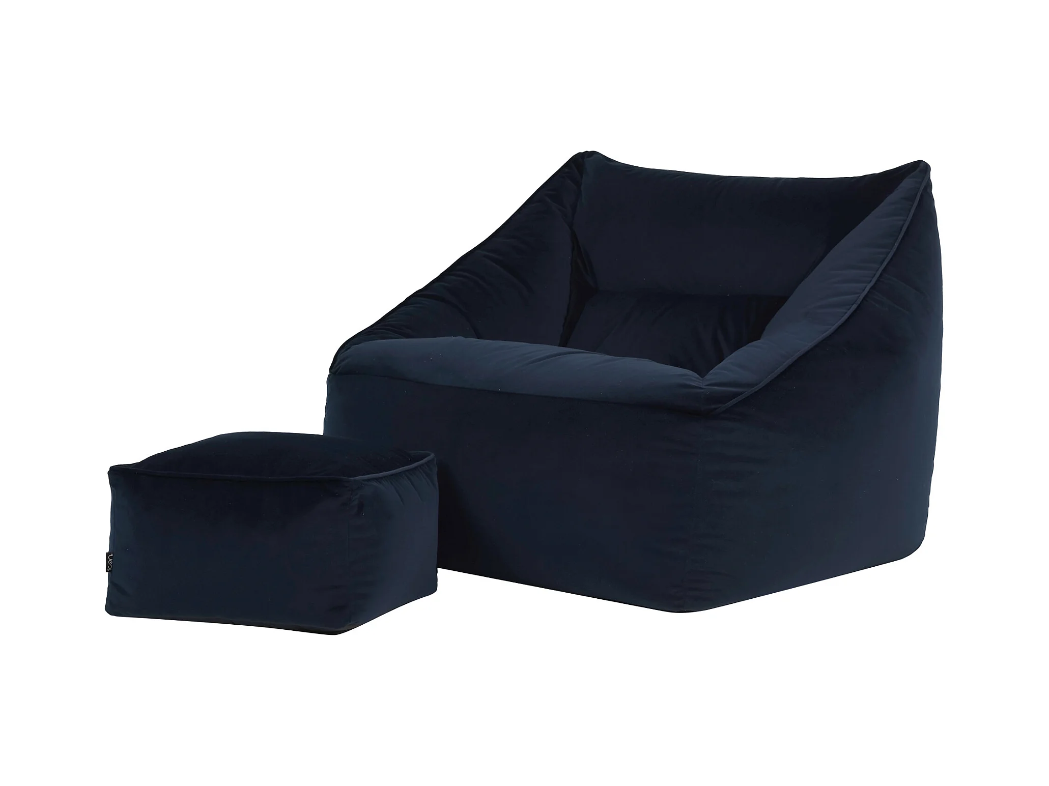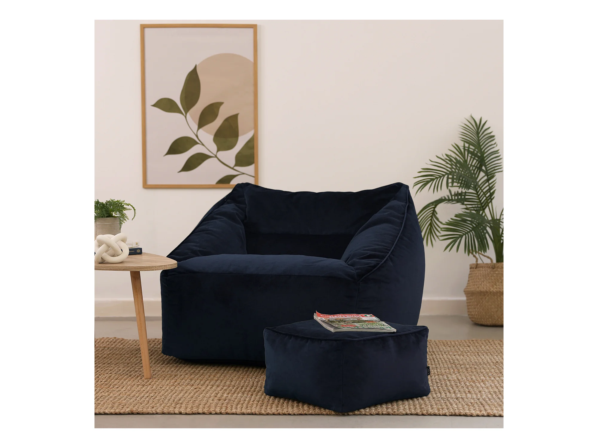 Pouf fauteuil avec repose-pied carré velours bleu minuit - NATALIA