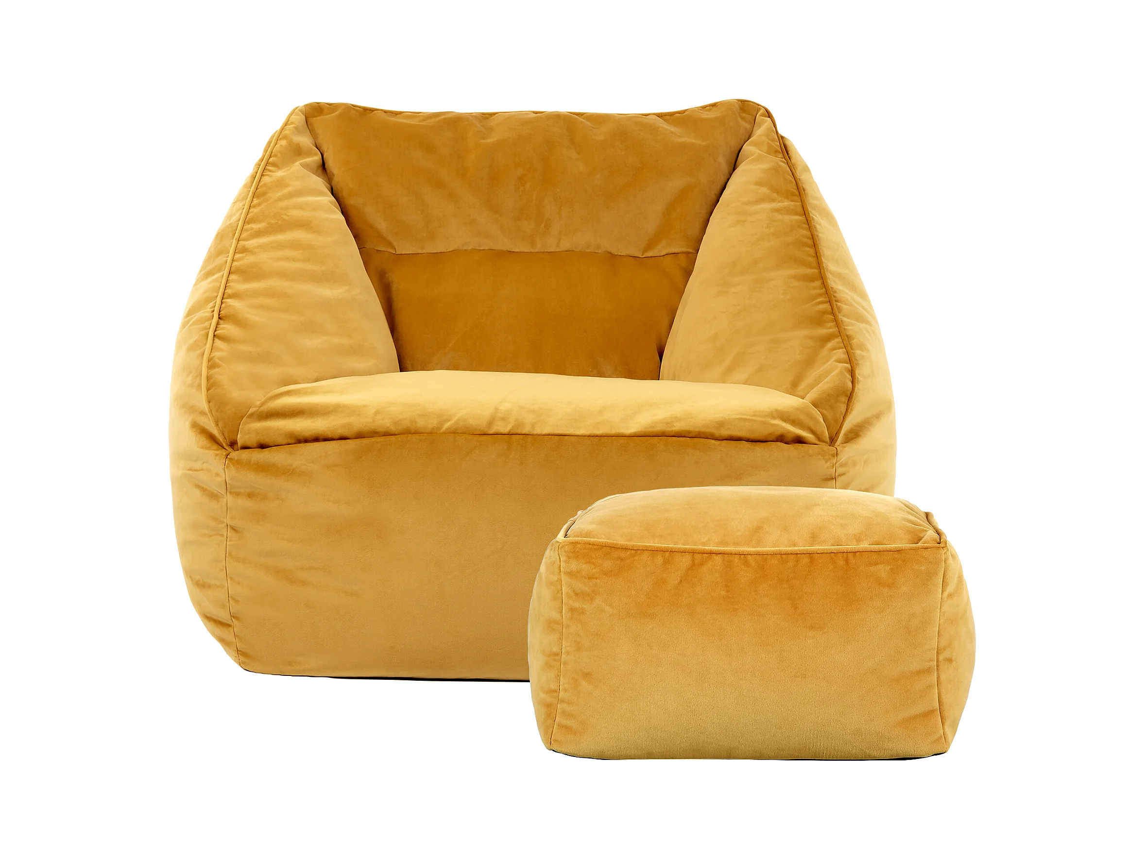 Pouf fauteuil avec repose-pied carré velours jaune ocre - NATALIA