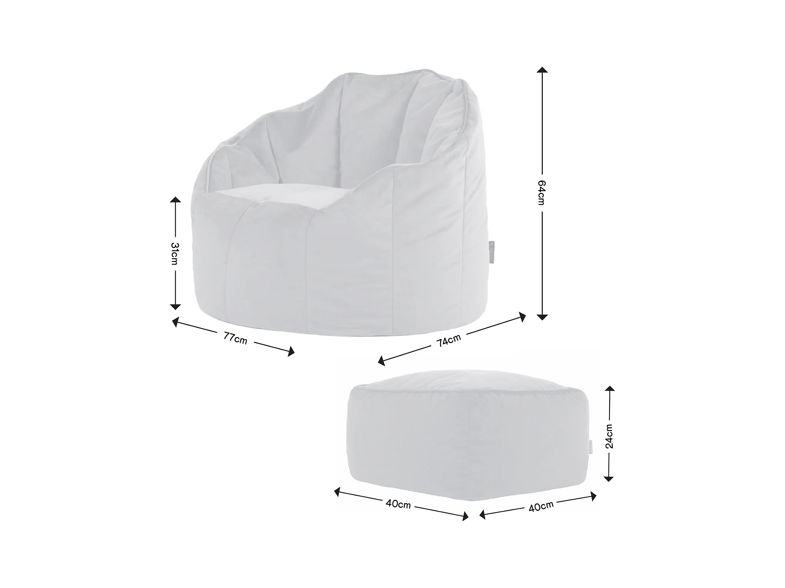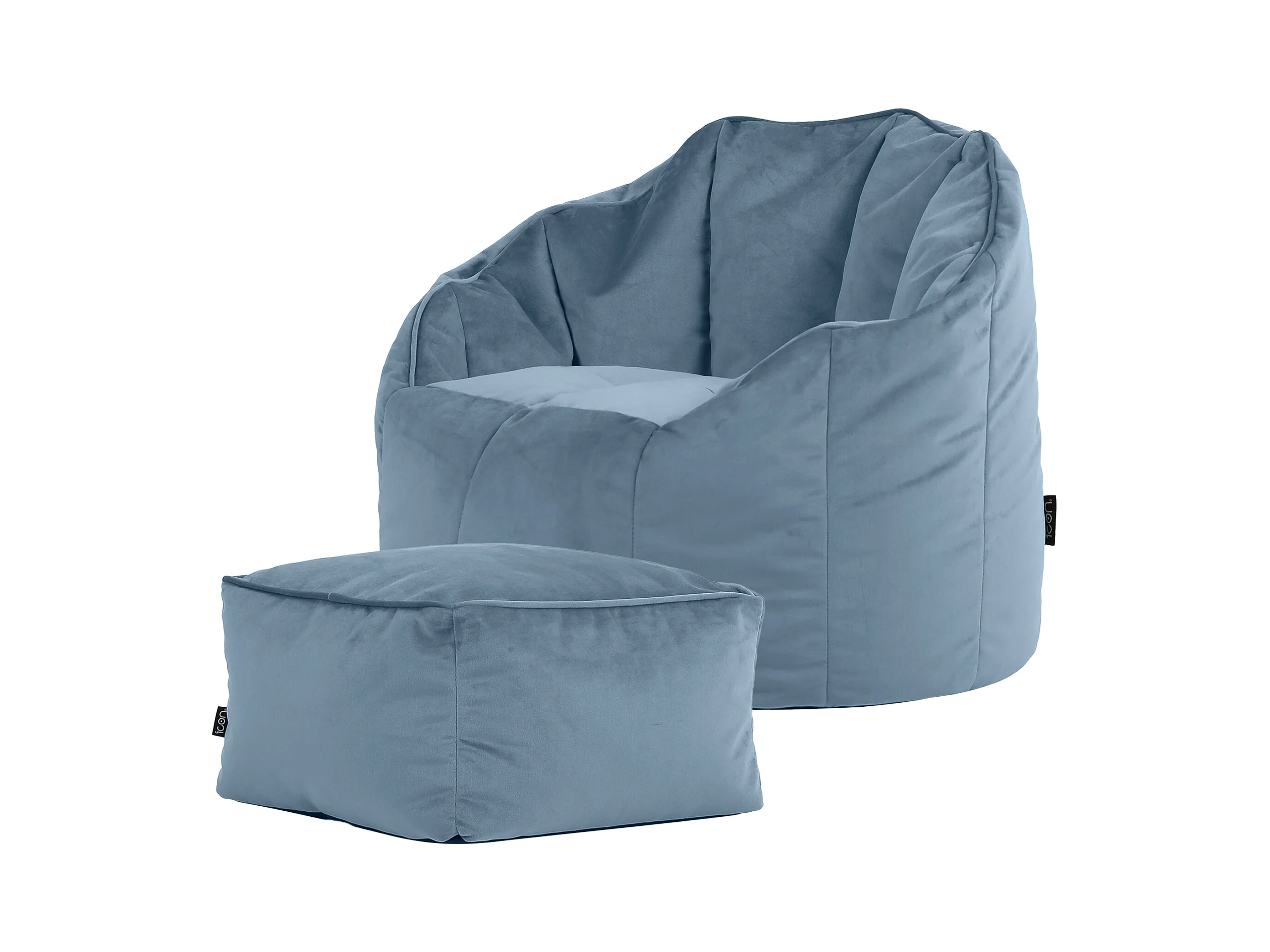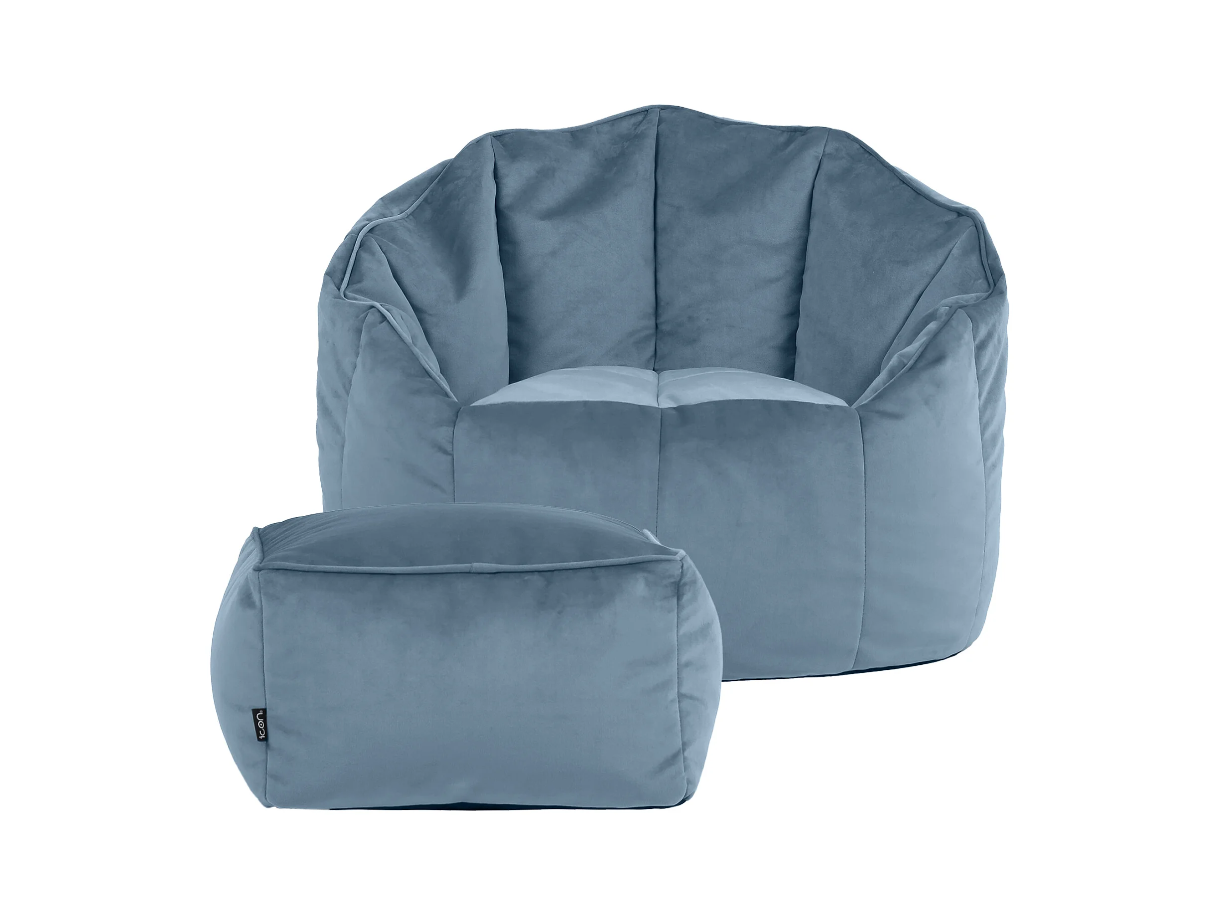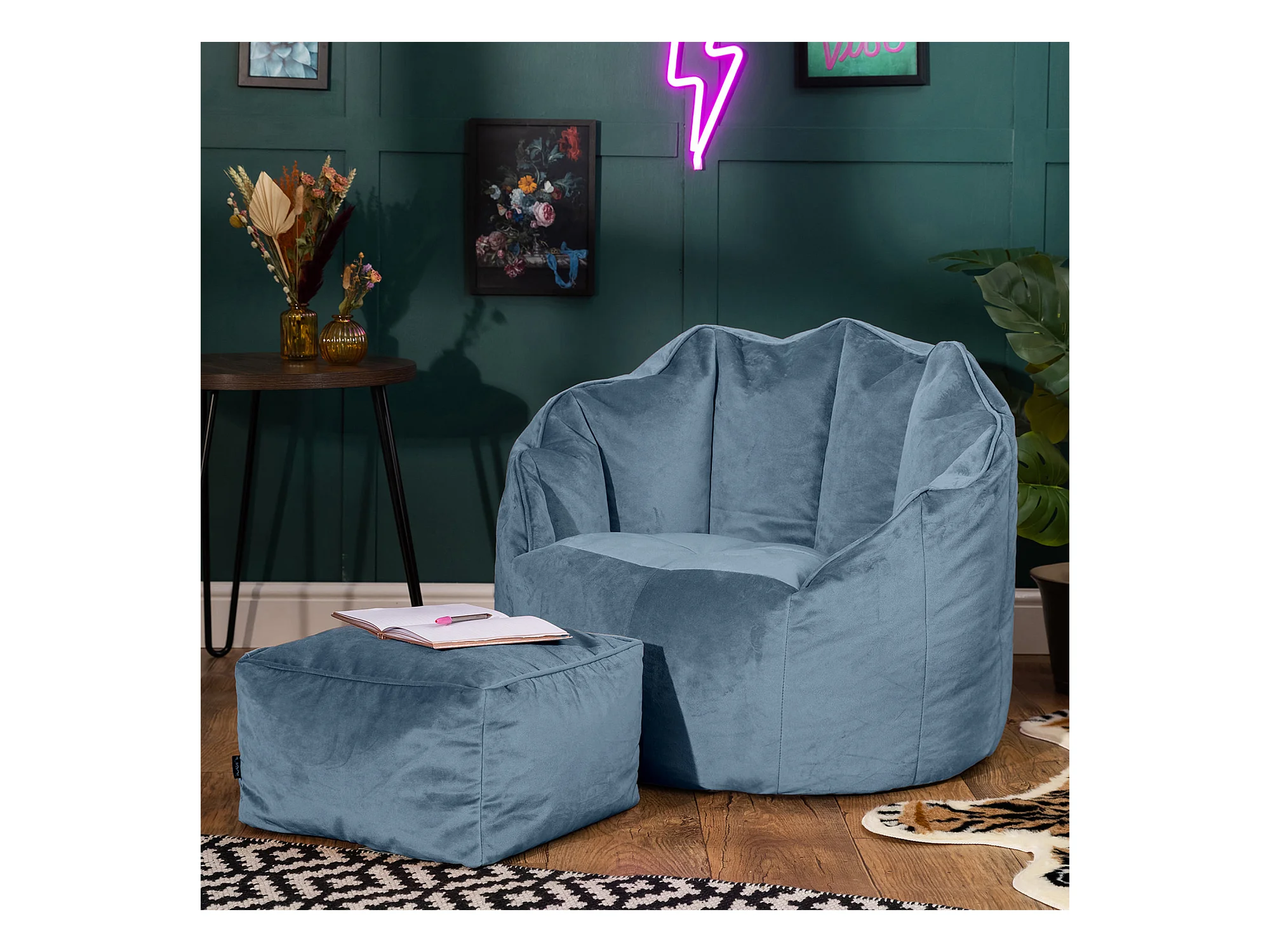 Pouf fauteuil avec repose-pied velours bleu minéral - SIRENA
