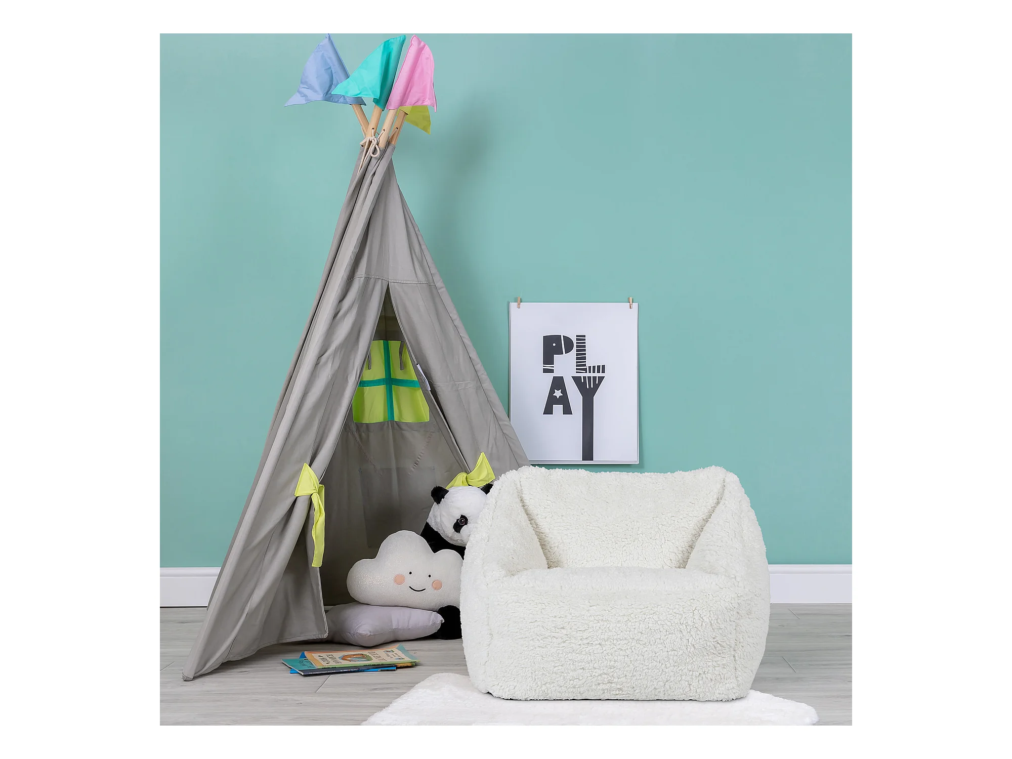 Pouf fauteuil enfant velours côtelé beige galet - MORGAN