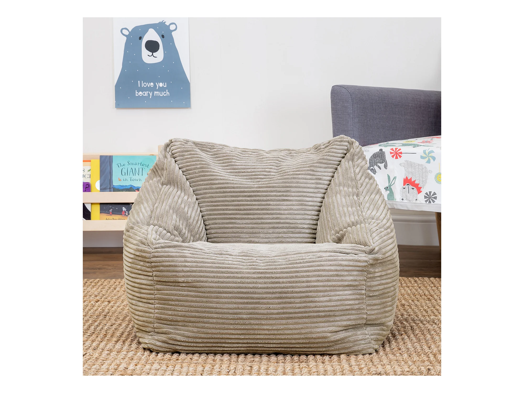 Pouf fauteuil enfant velours côtelé beige galet - MORGAN