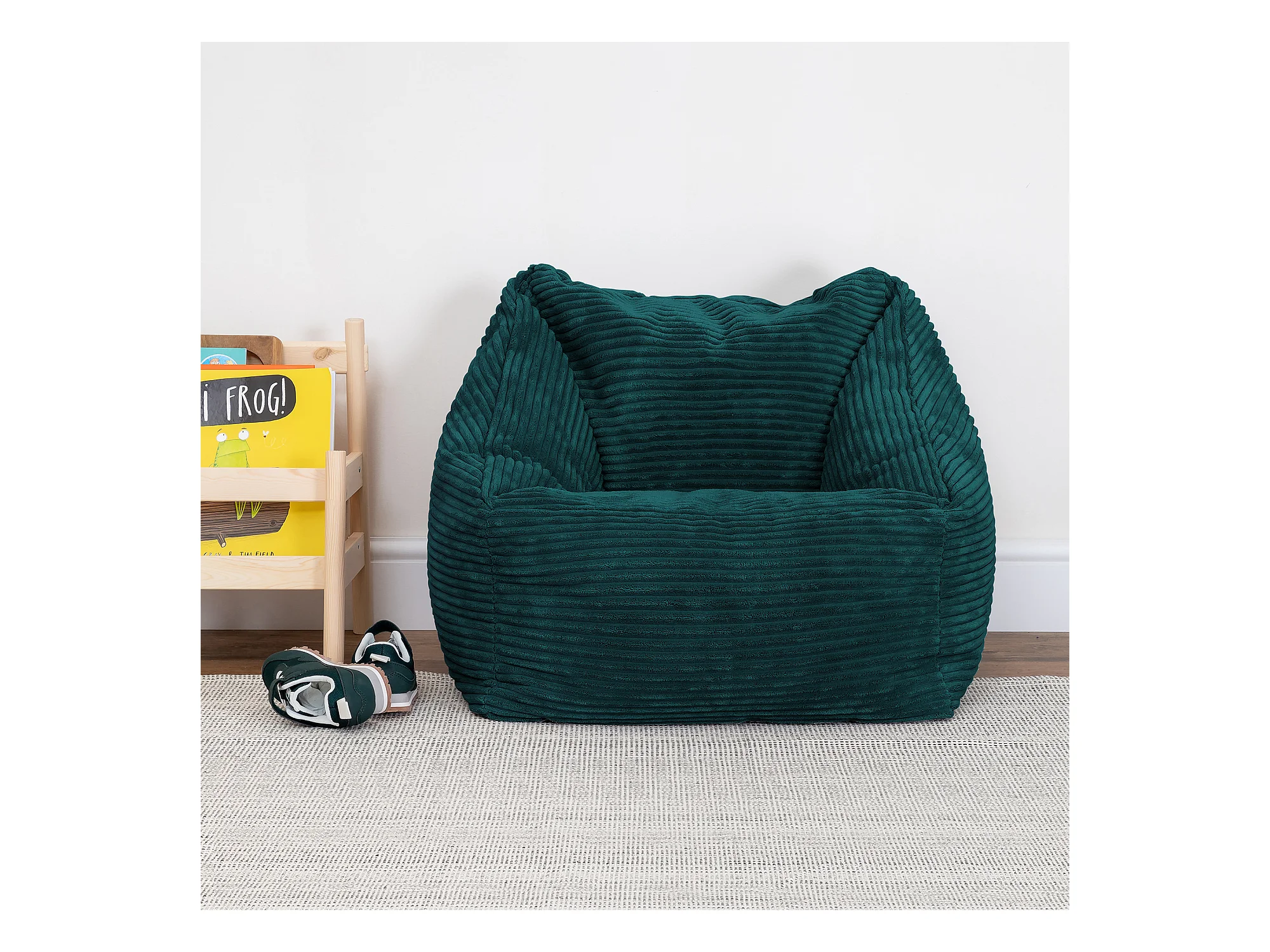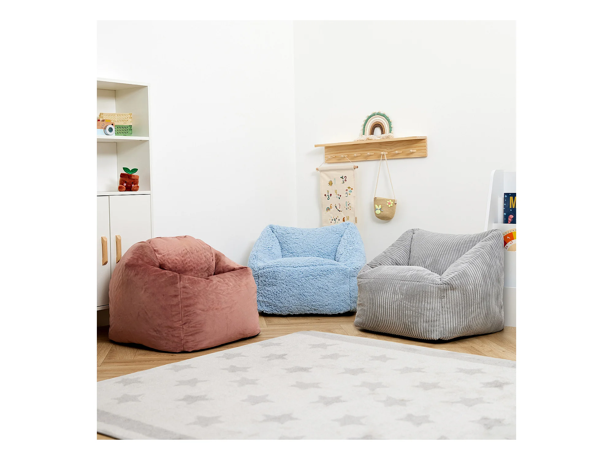 Pouf fauteuil enfant velours côtelé bleu canard - MORGAN