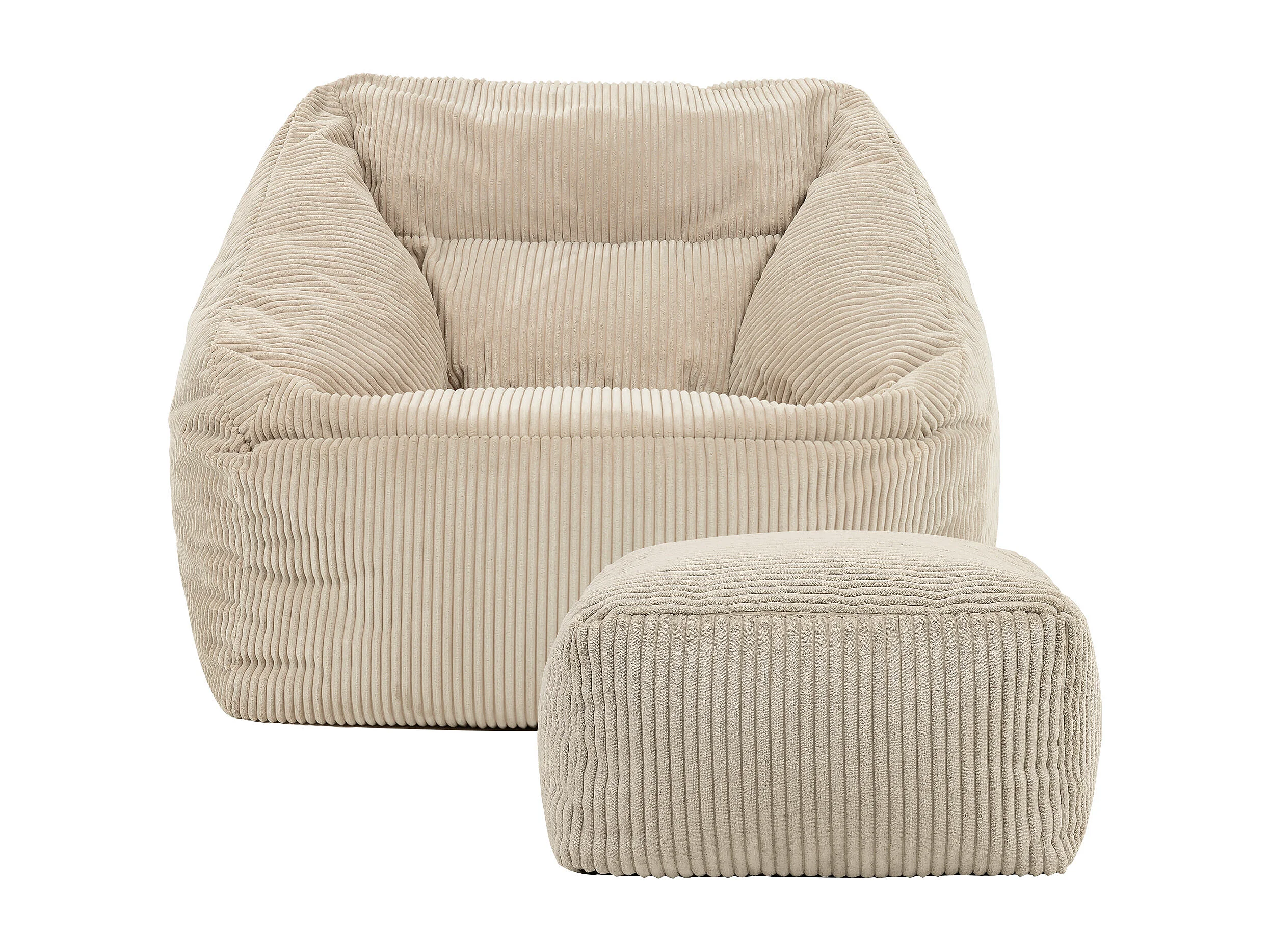 Pouf fauteuil et son repose-pieds carré velours côtelé beige - MORGAN