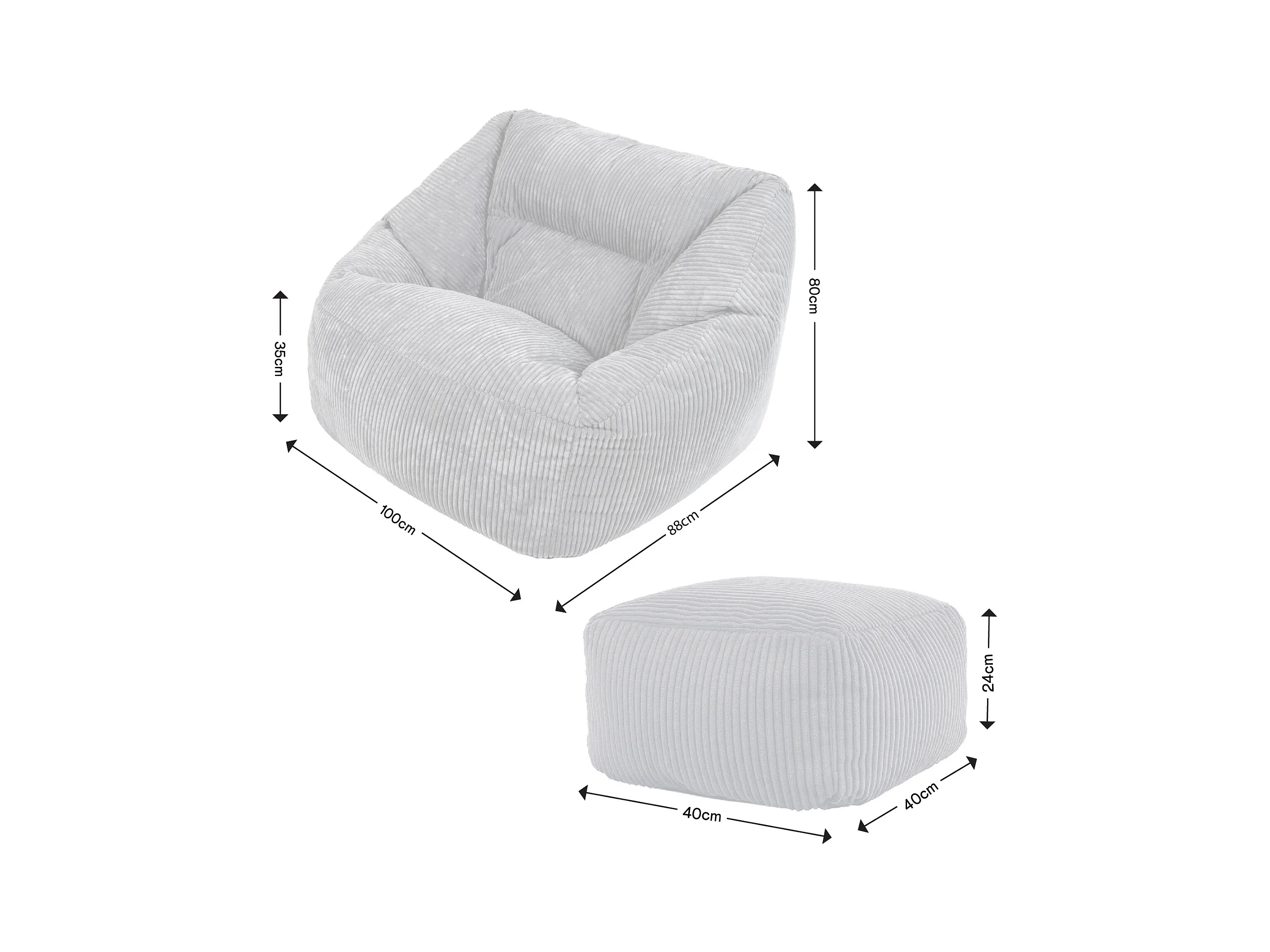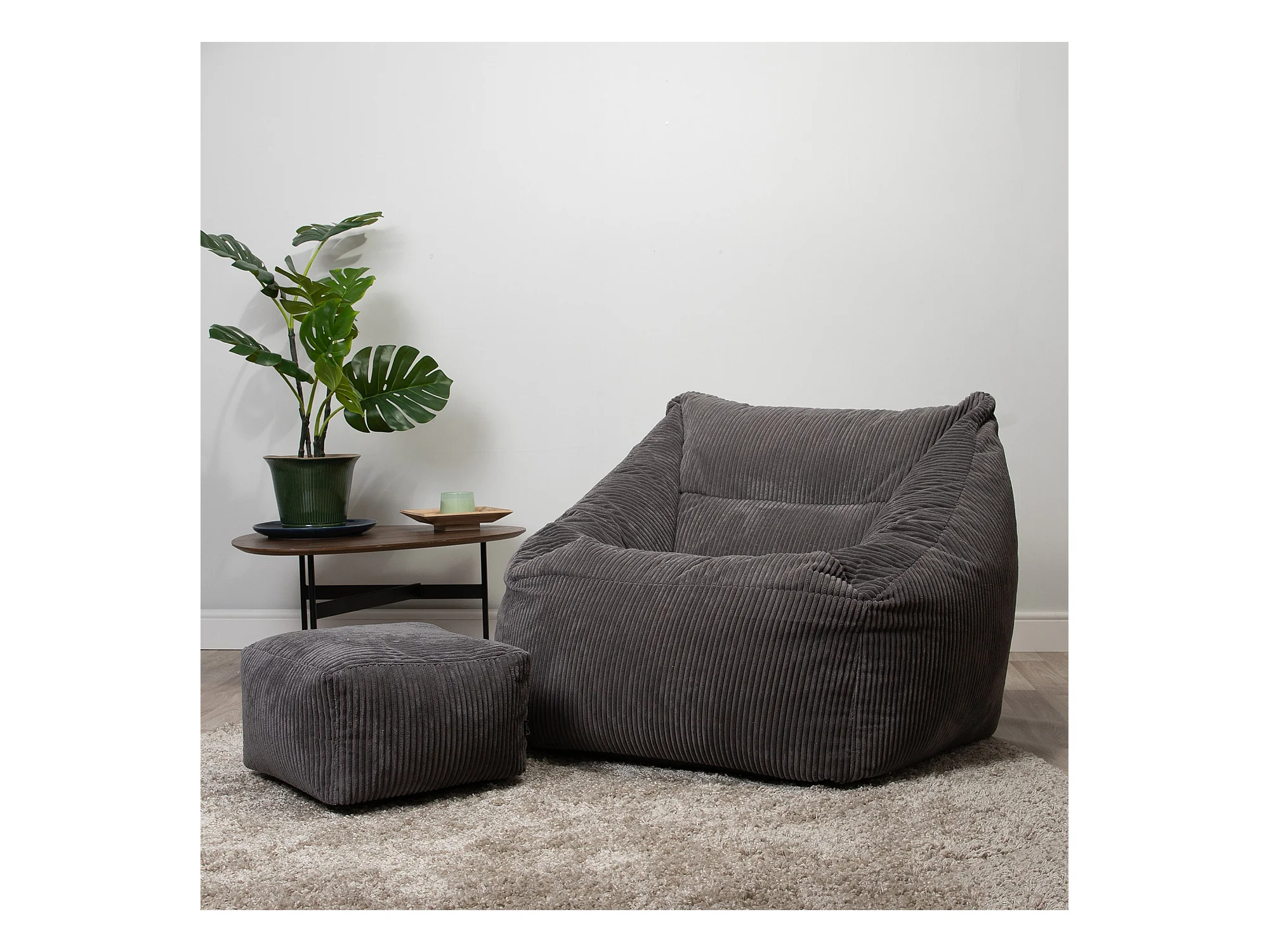 Pouf fauteuil et son repose-pieds carré velours côtelé gris anthracite - MORGAN
