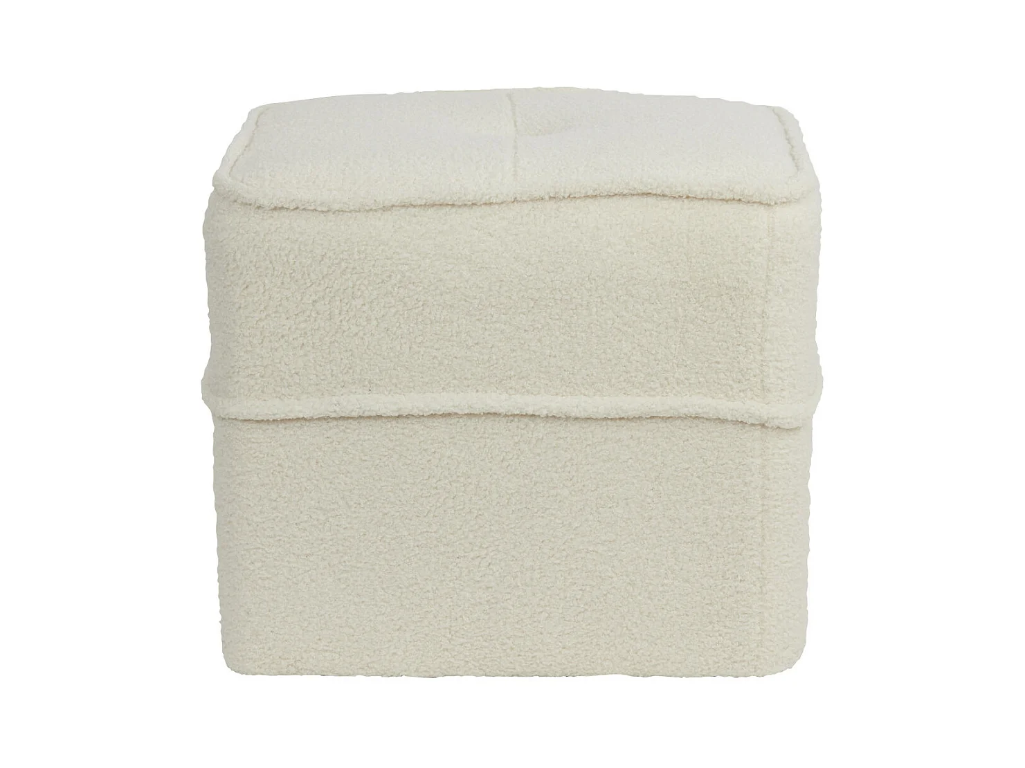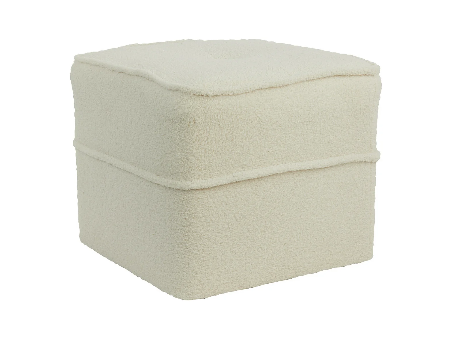 Pouf Carré Tapissé en Velours Côtelé - Design Moderne - Cube Ivoire