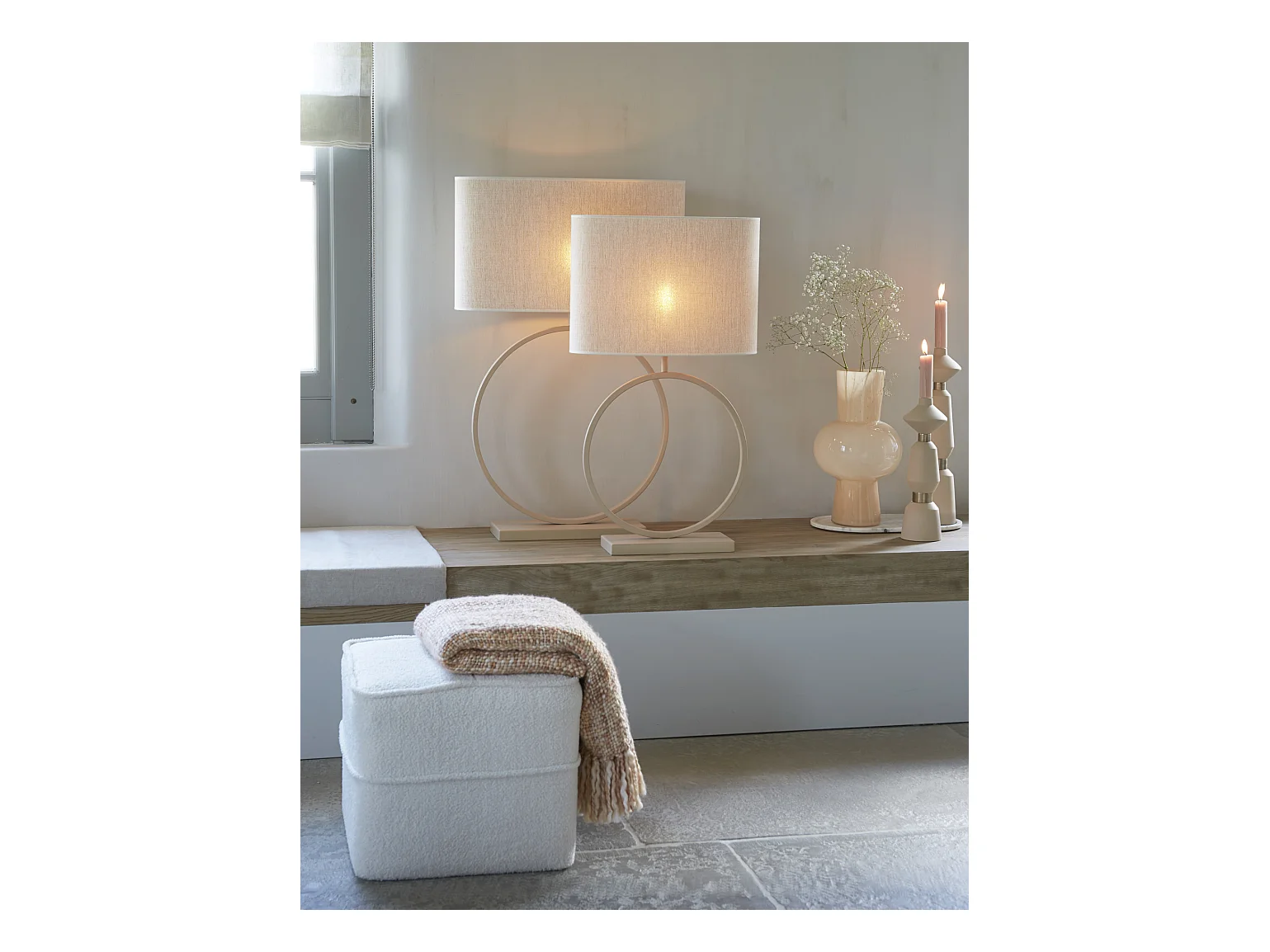 Pouf rond en tissu effet laine bouclée blanc cassé et métal doré D54 cm AMAYA