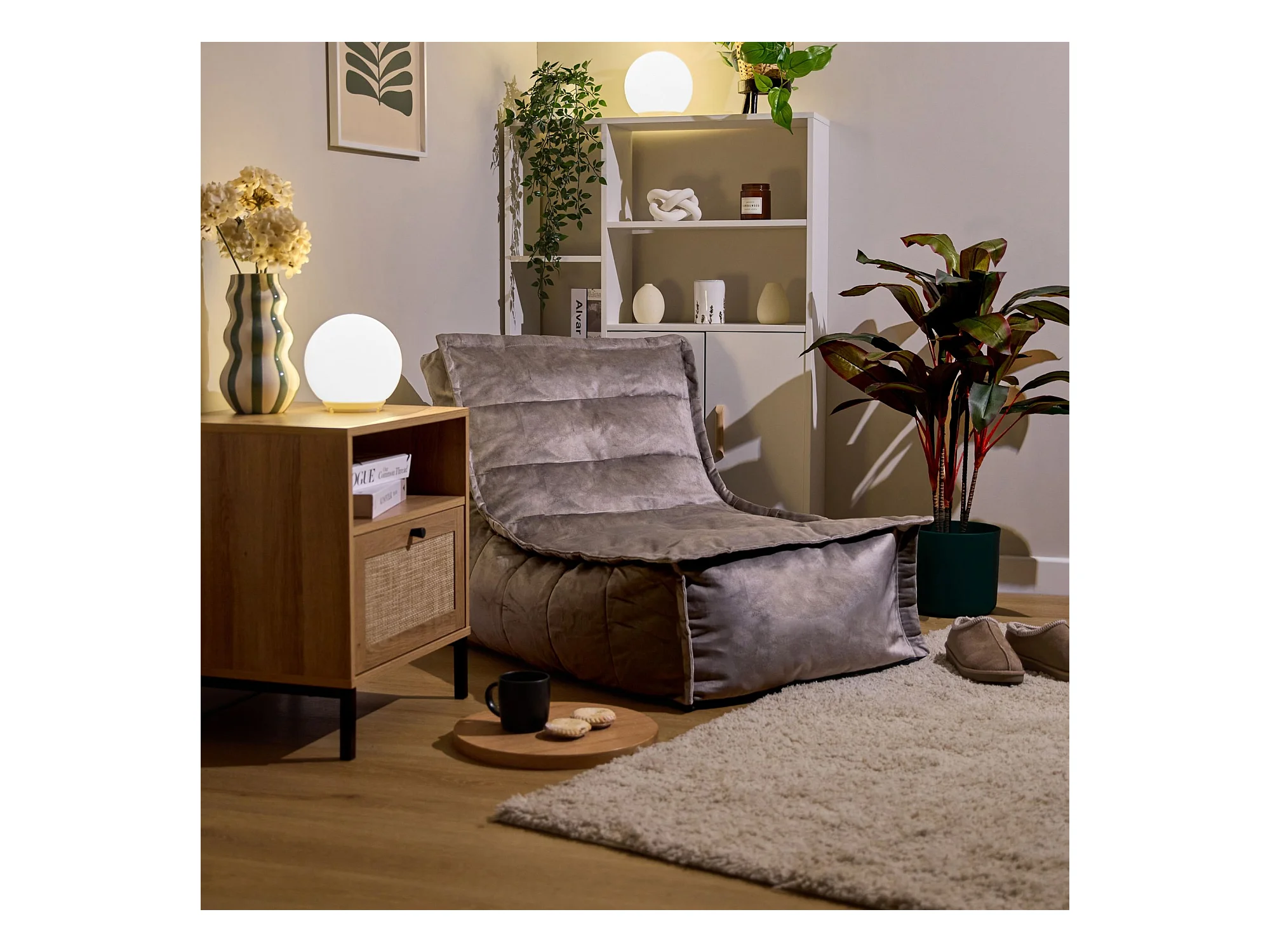 Pouf méridienne velours gris anthracite - DOLCE