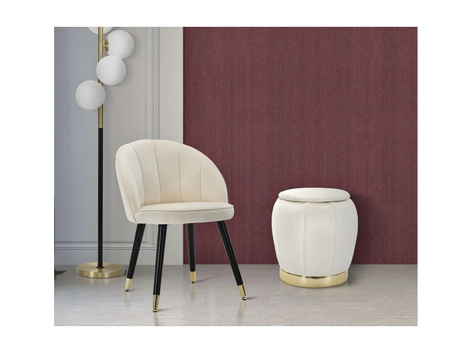 Pouf Coffre Rangement "Paris" 43cm Crème & Or