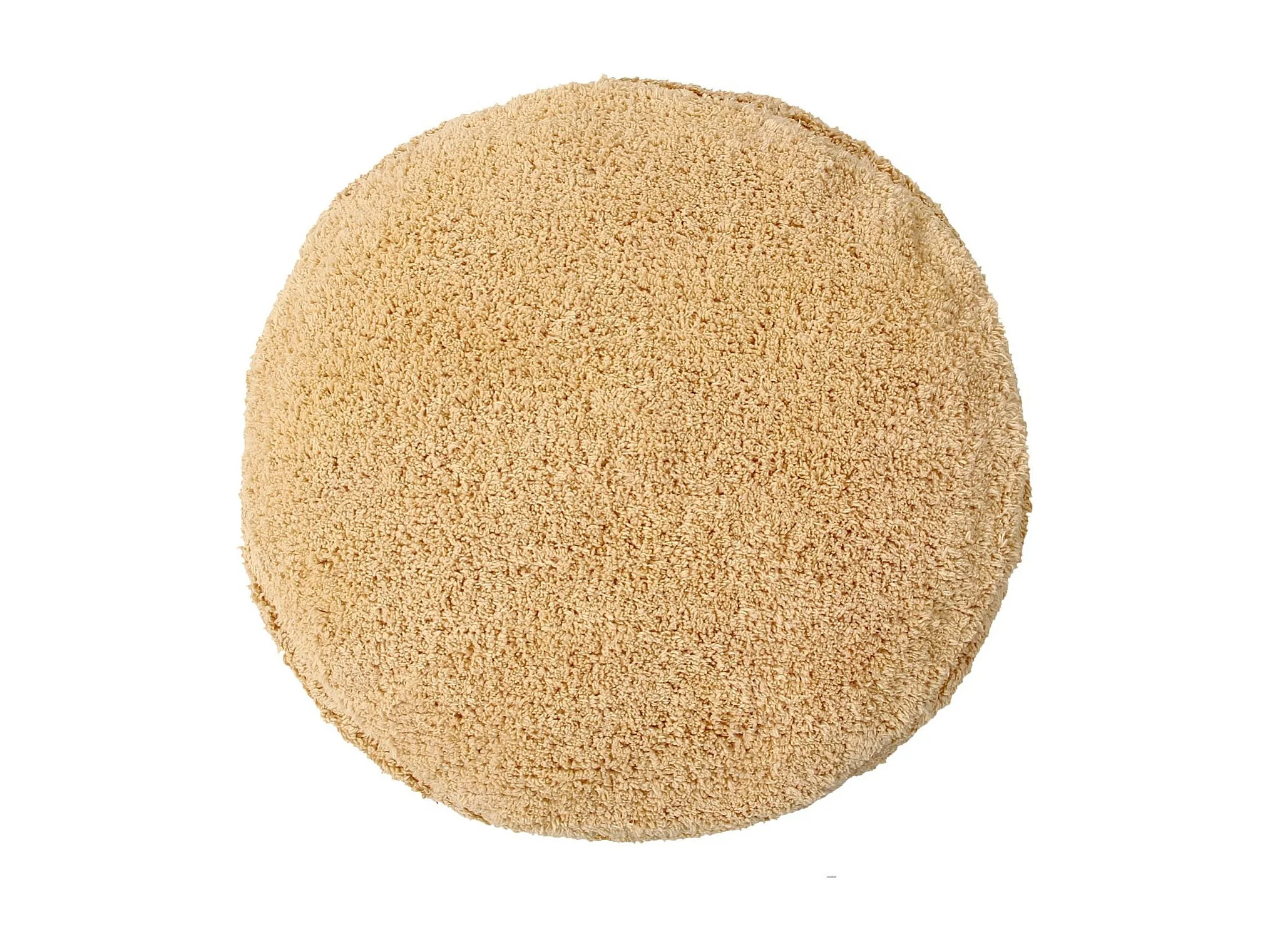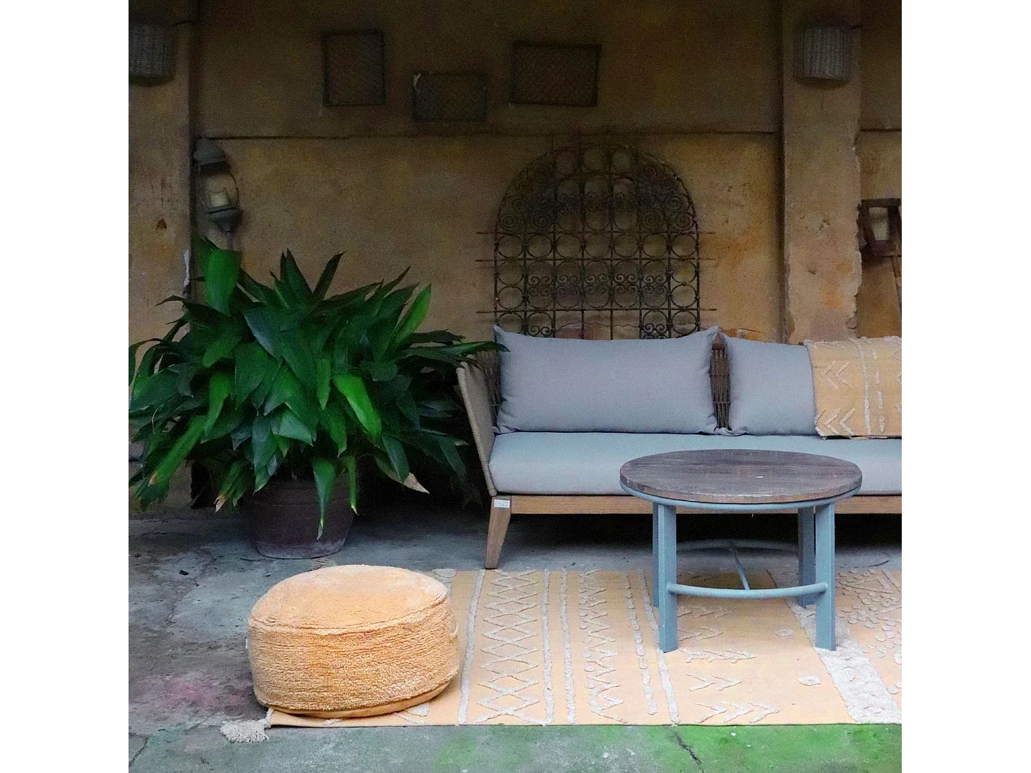 Pouf tricot rond en coton jaune moutarde D40 cm - Elisa