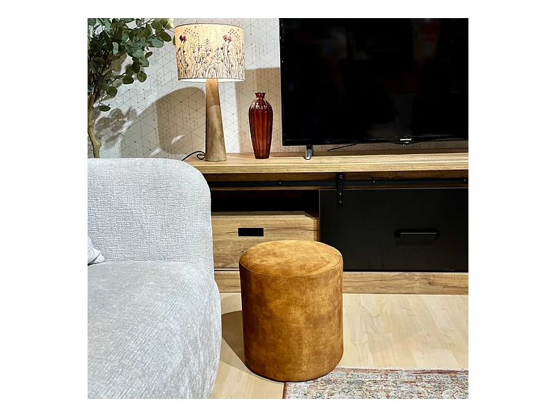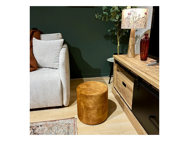 Pouf / Repose-pieds rond D. 32 cm en velours jaune moutarde – JOEL