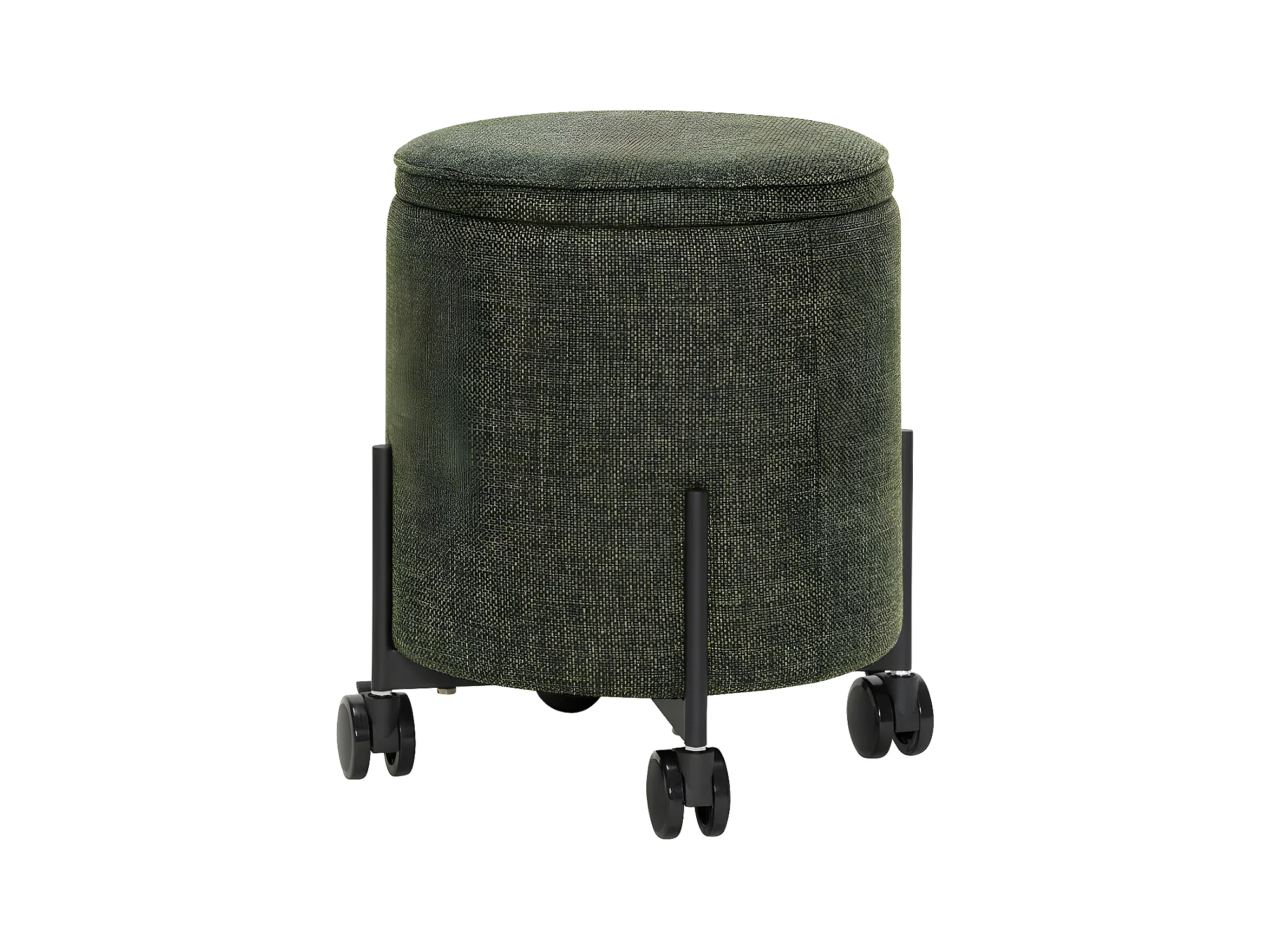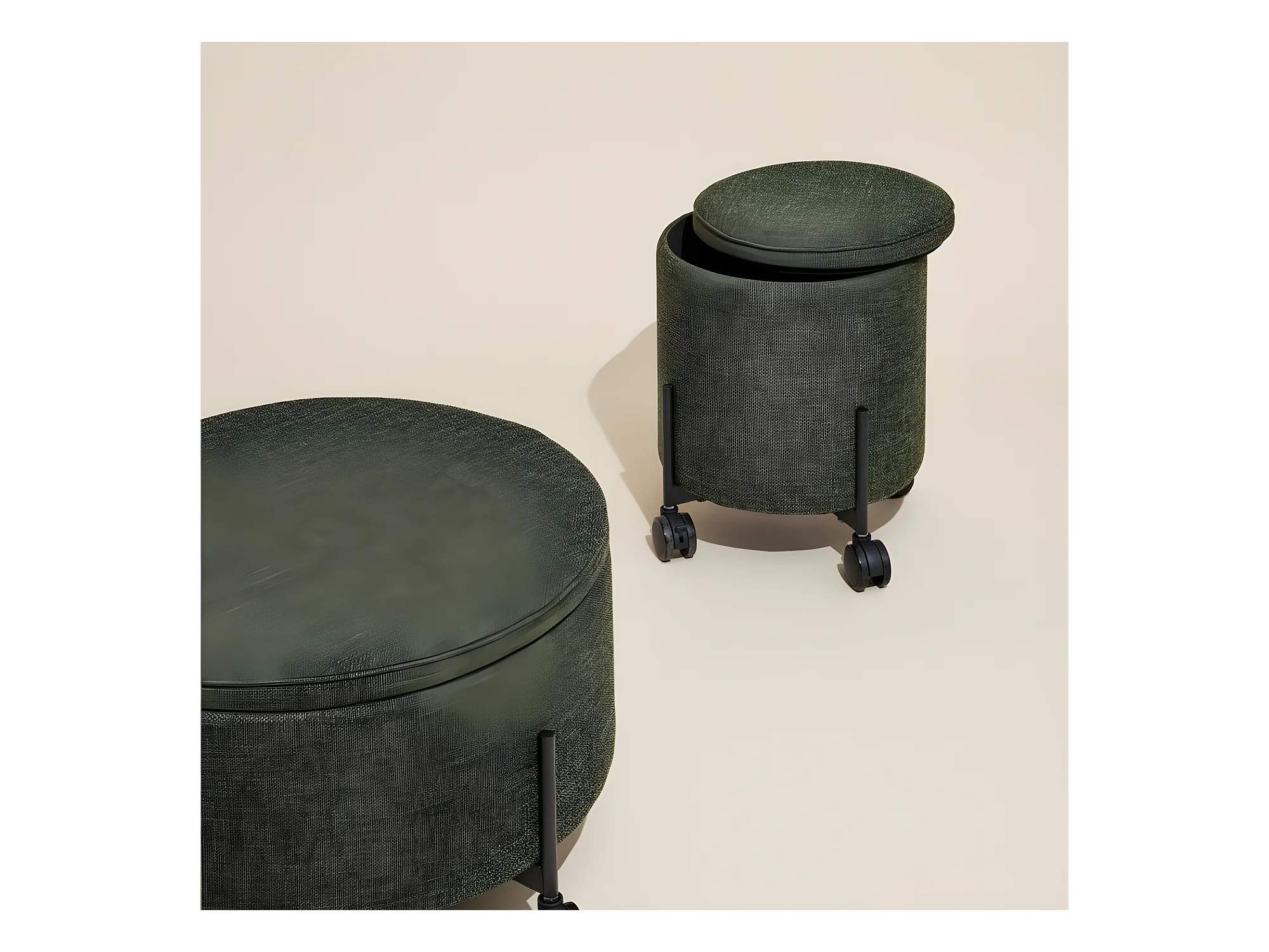 Pouf rond à roulettes 42cm avec coffre en tissu vert OXFORD