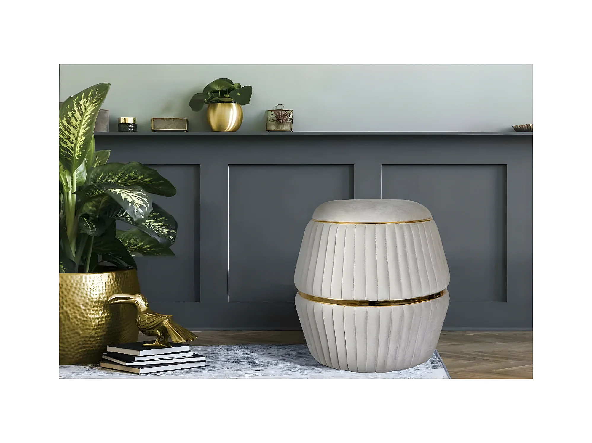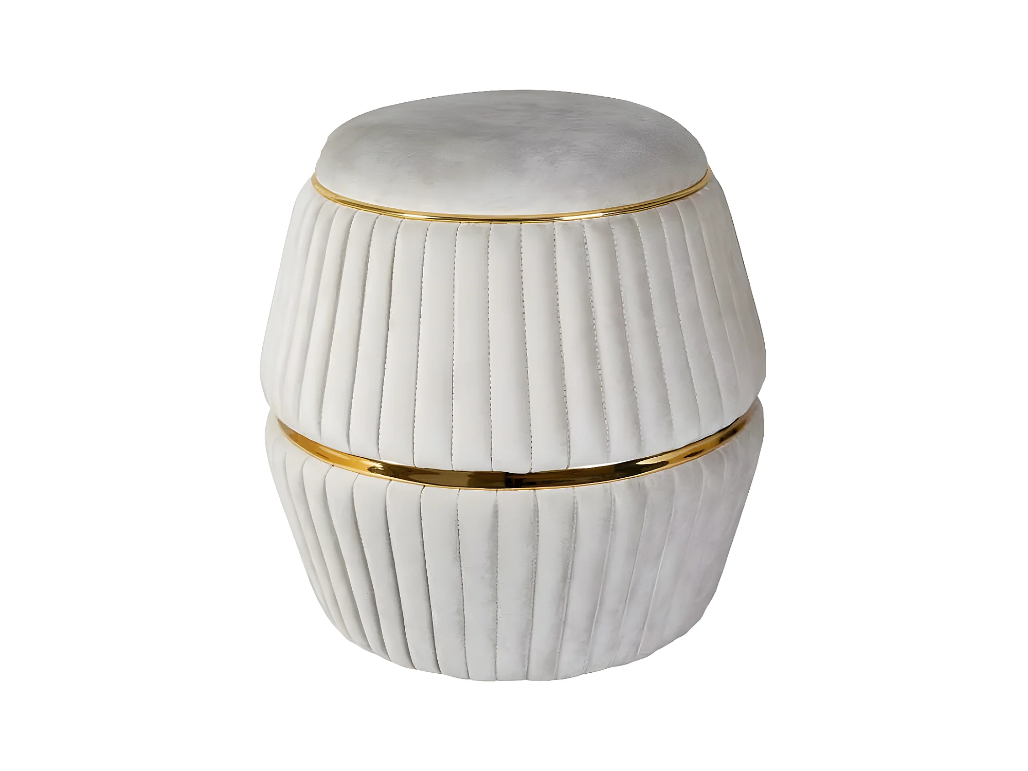 Pouf Rond Design "Doric" 53cm Taupe & Or
