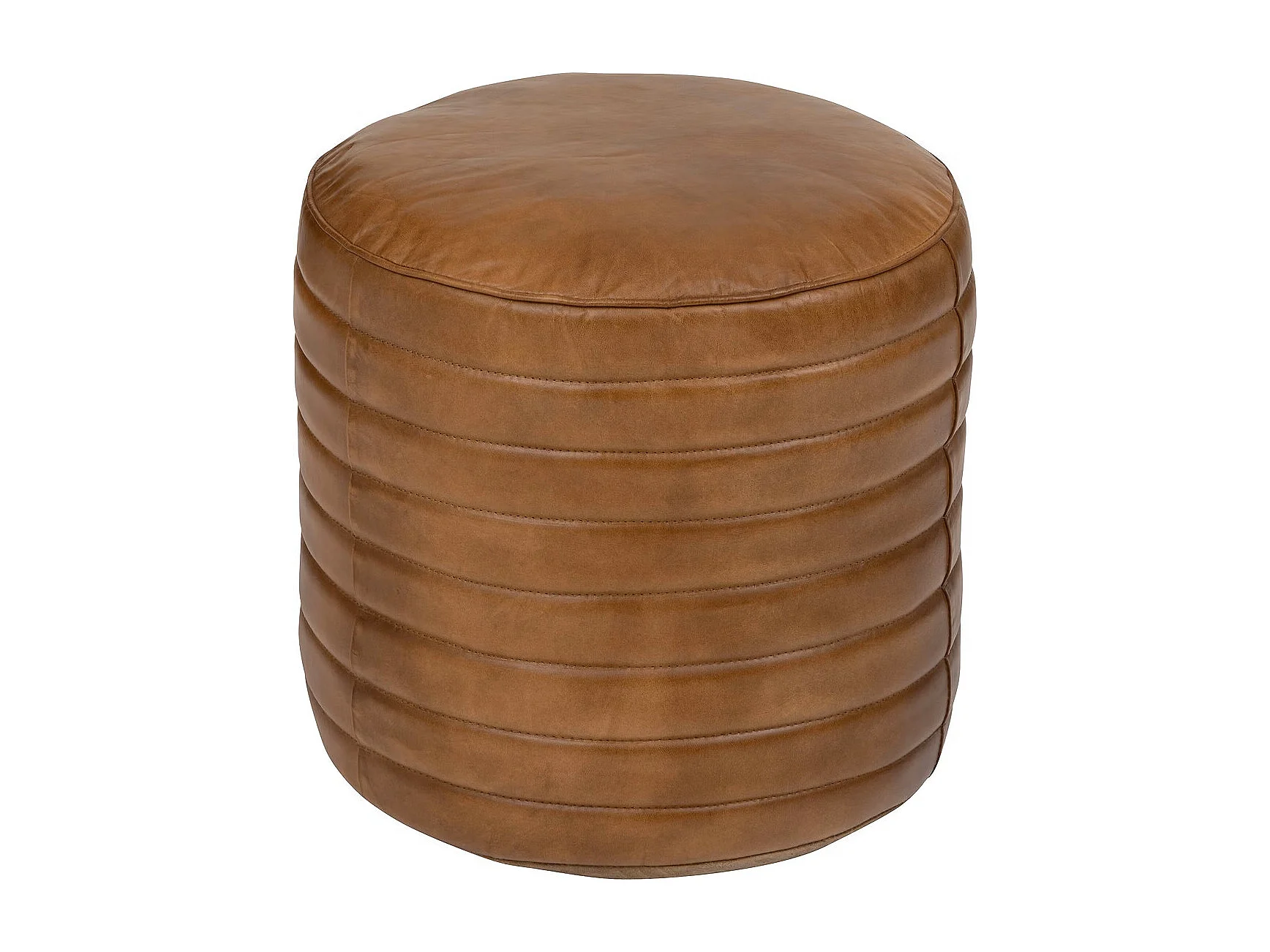 Pouf rond en cuir coloris marron - diamètre 40 x Hauteur 45 cm