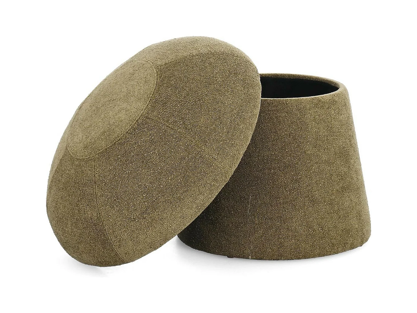 Pouf kaki foncé en tissu avec rangement pour coussins ou plaids
