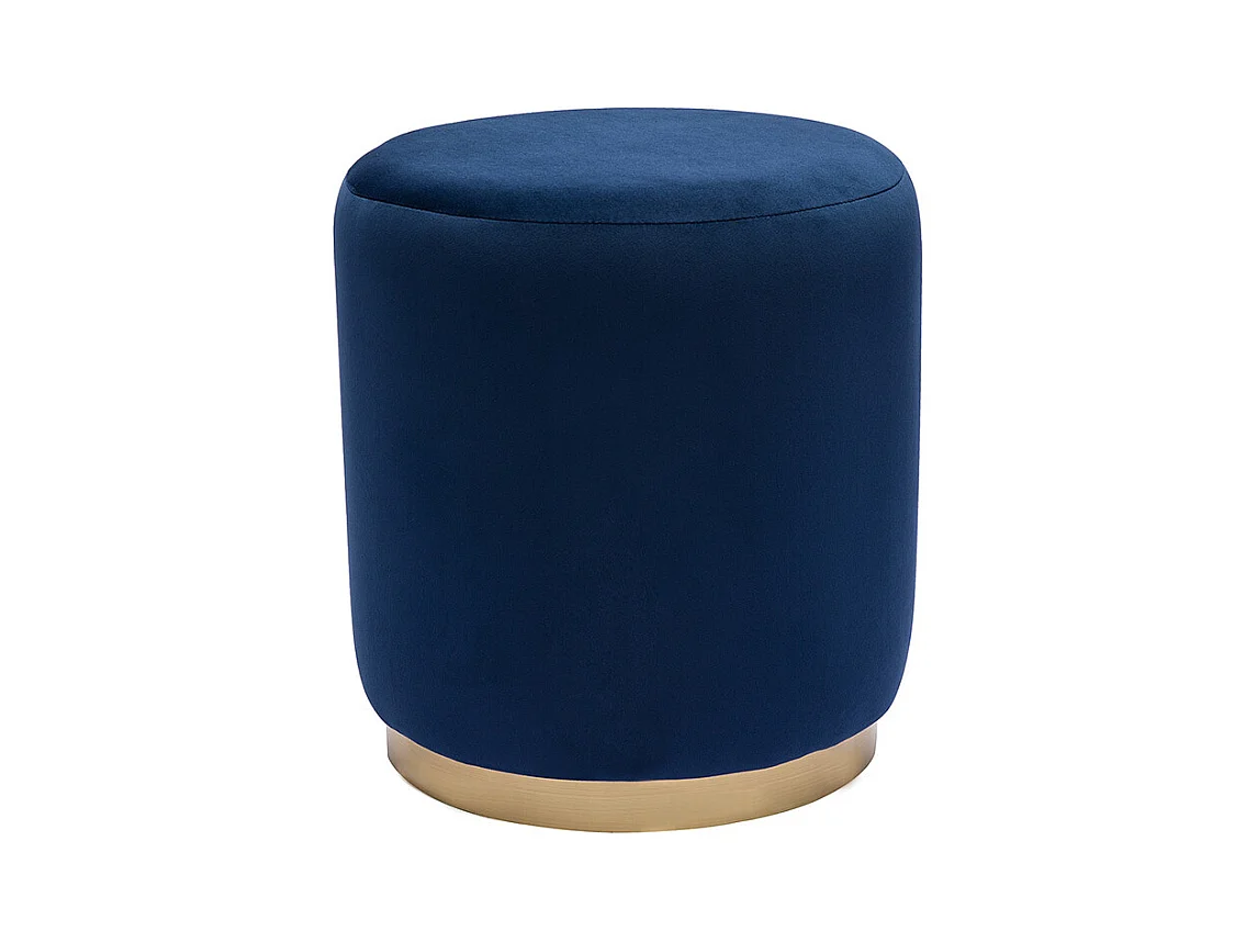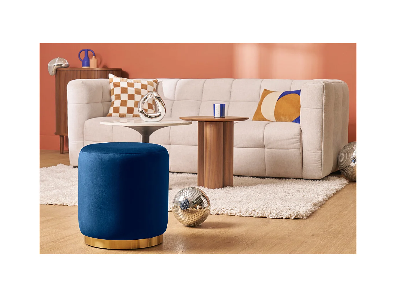 Pouf rond en velours bleu marine et métal doré D40 cm AMAYA