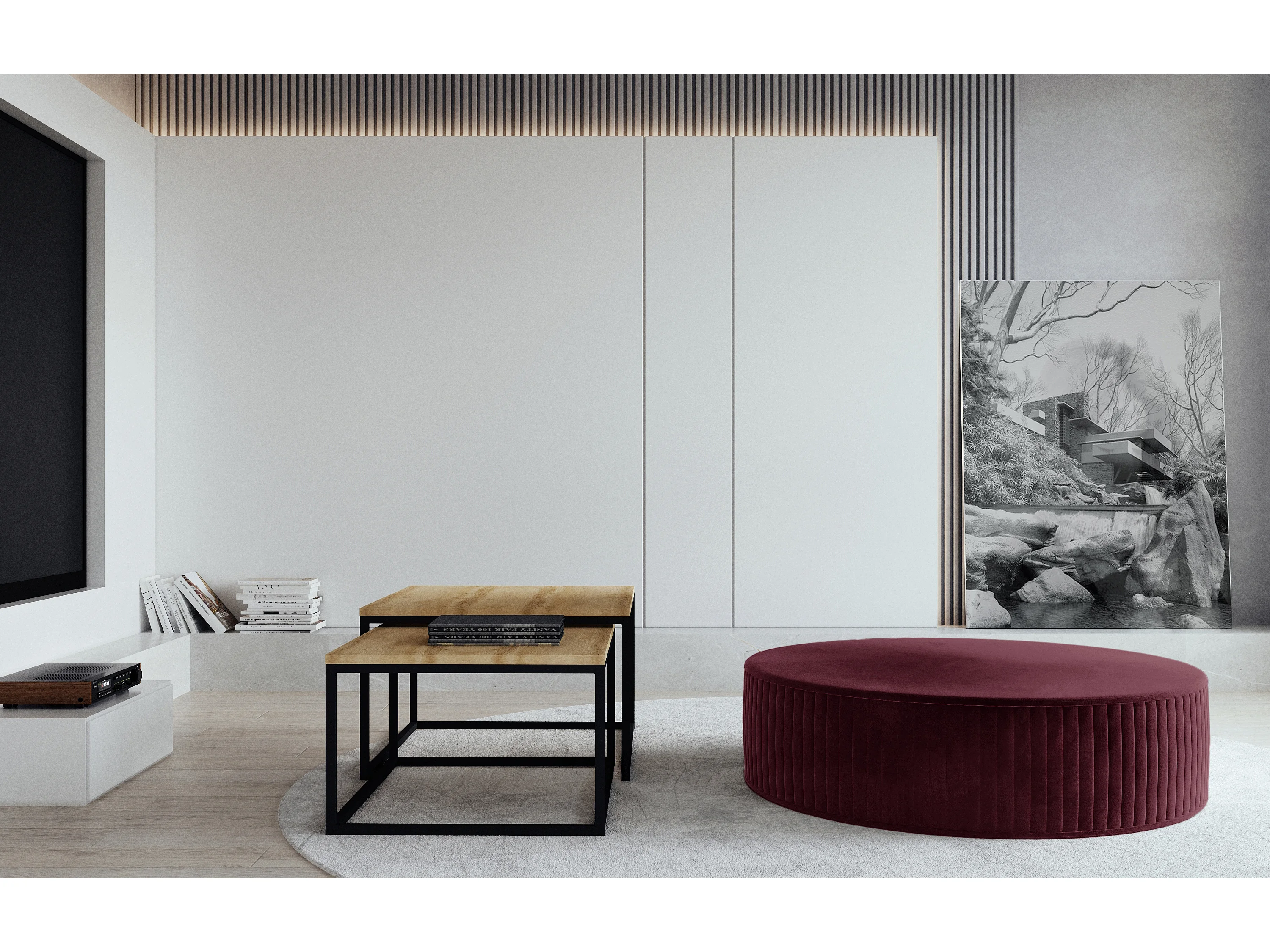 Pouf rond en velours KARA – Confort absolu-Bordeaux