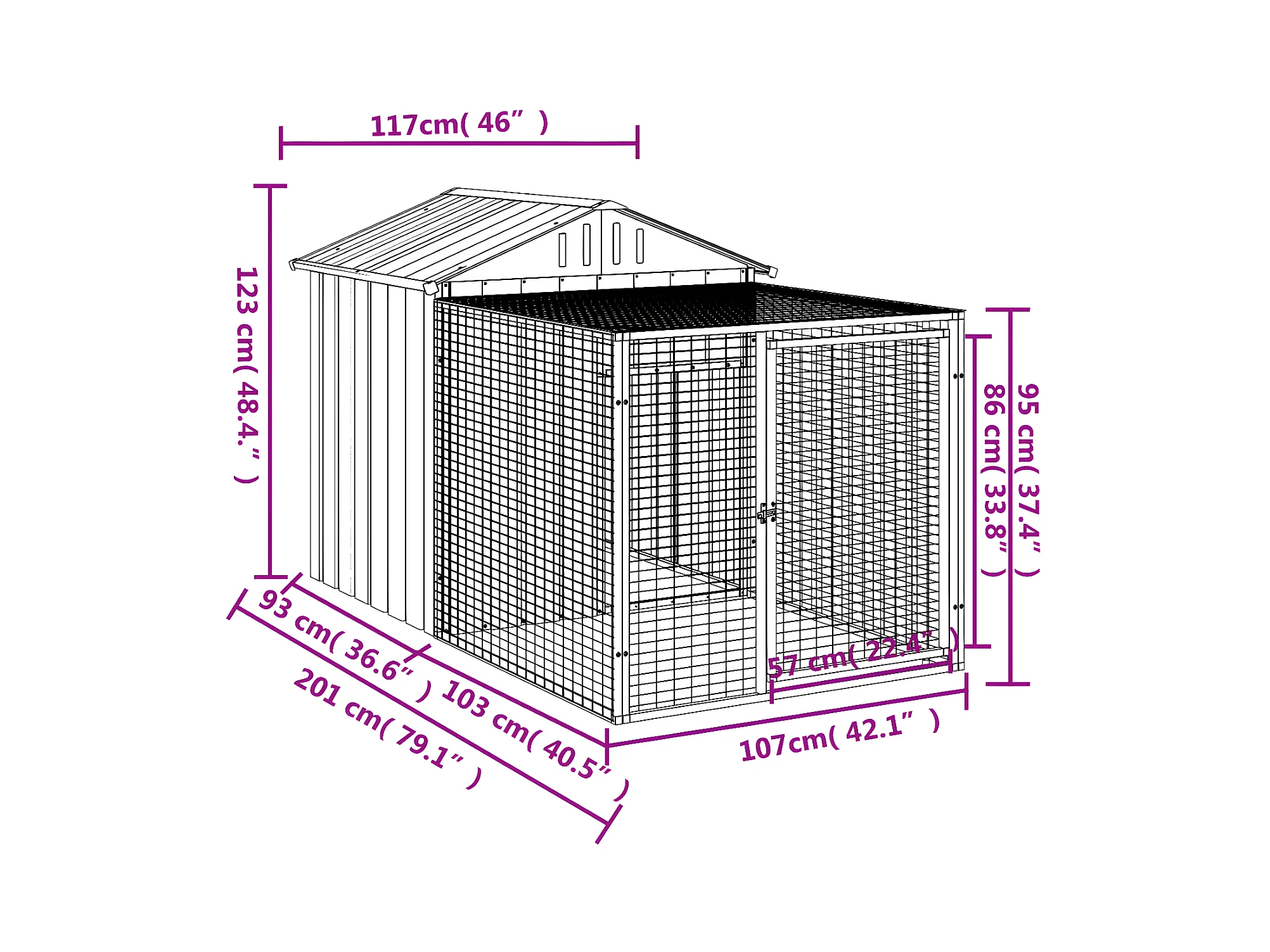 Poulailler avec cour gris clair 117x201x123 cm acier galvanisé RG3Q44766