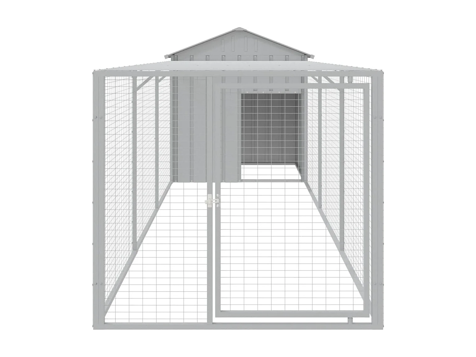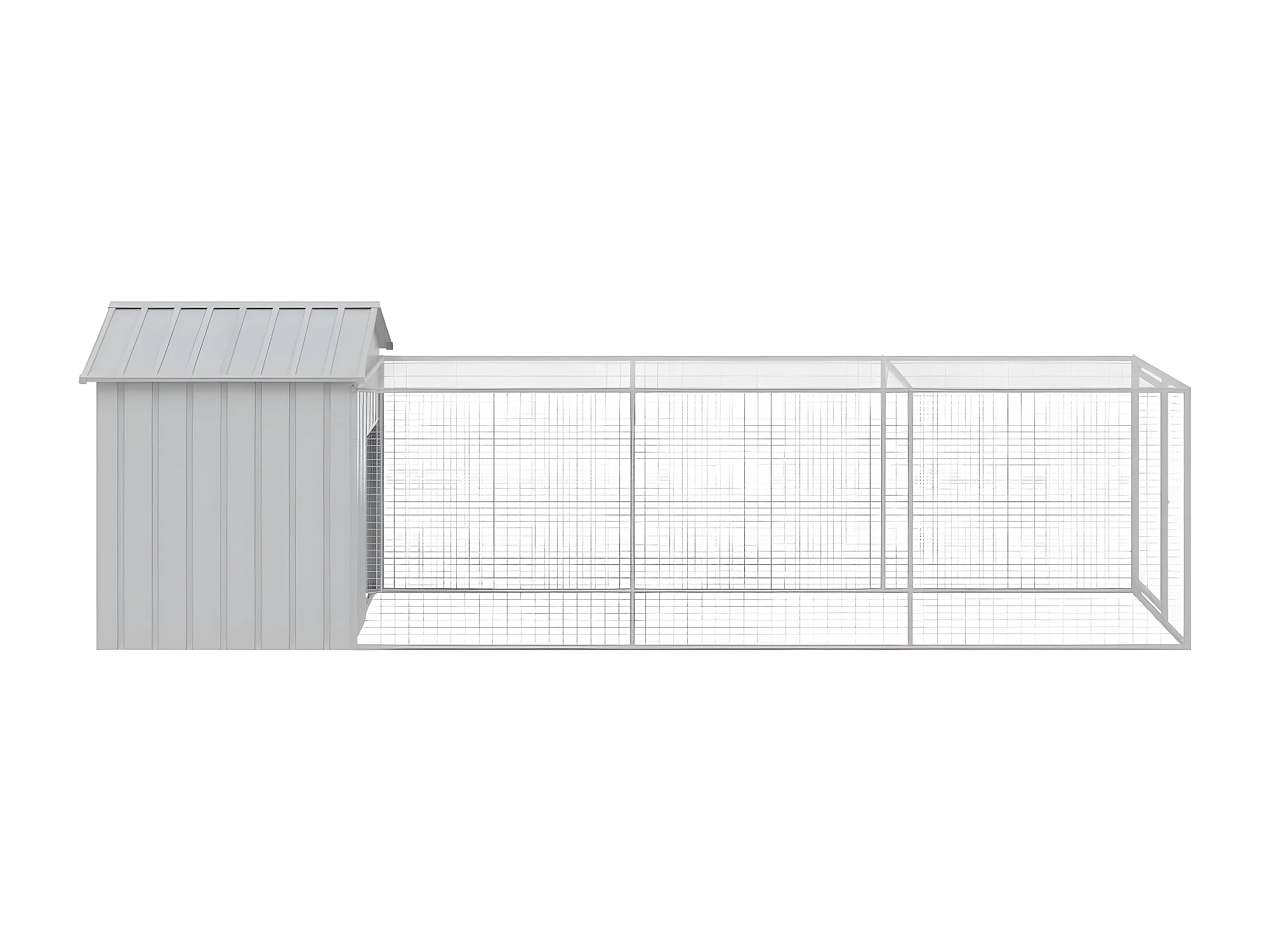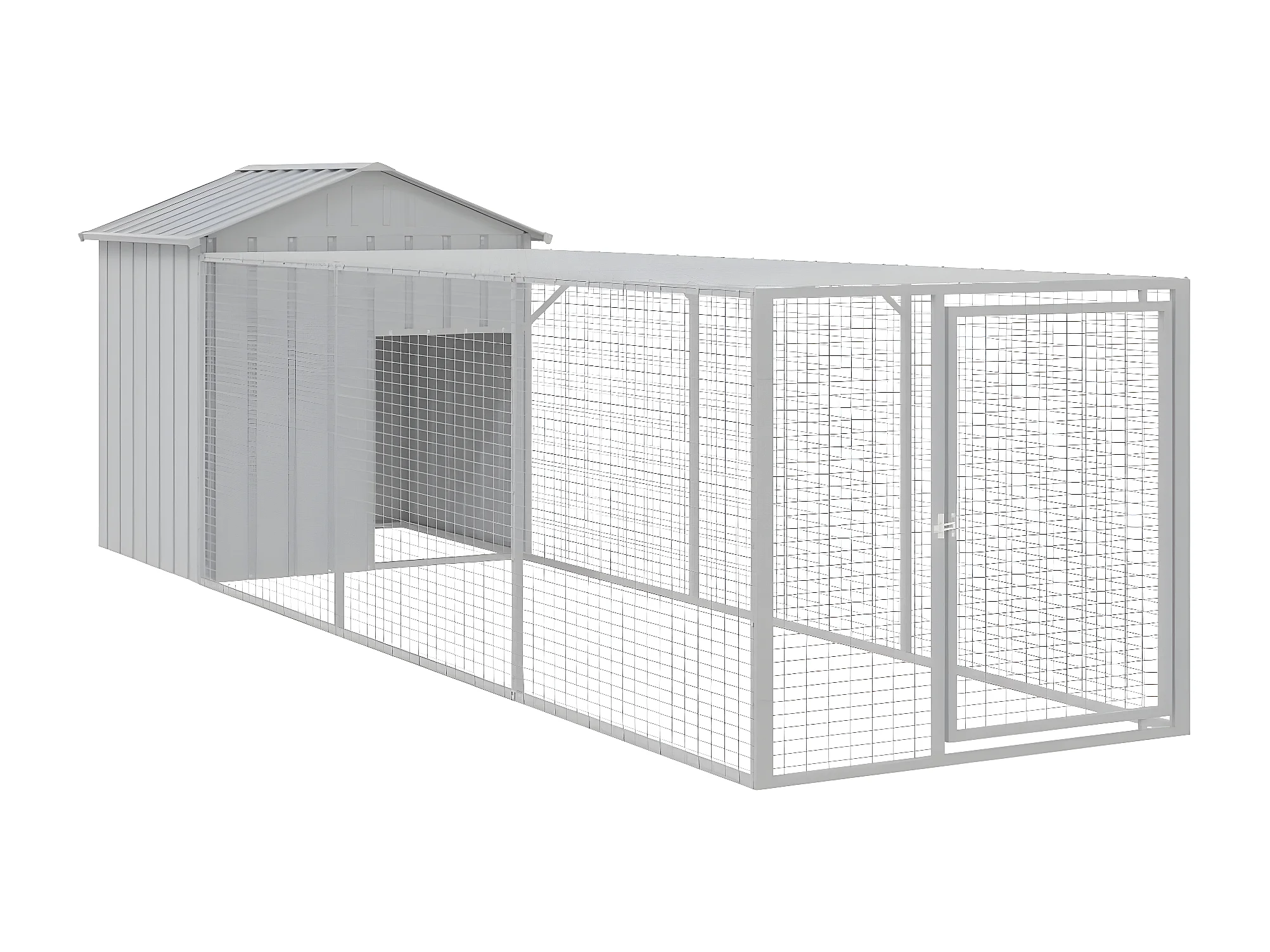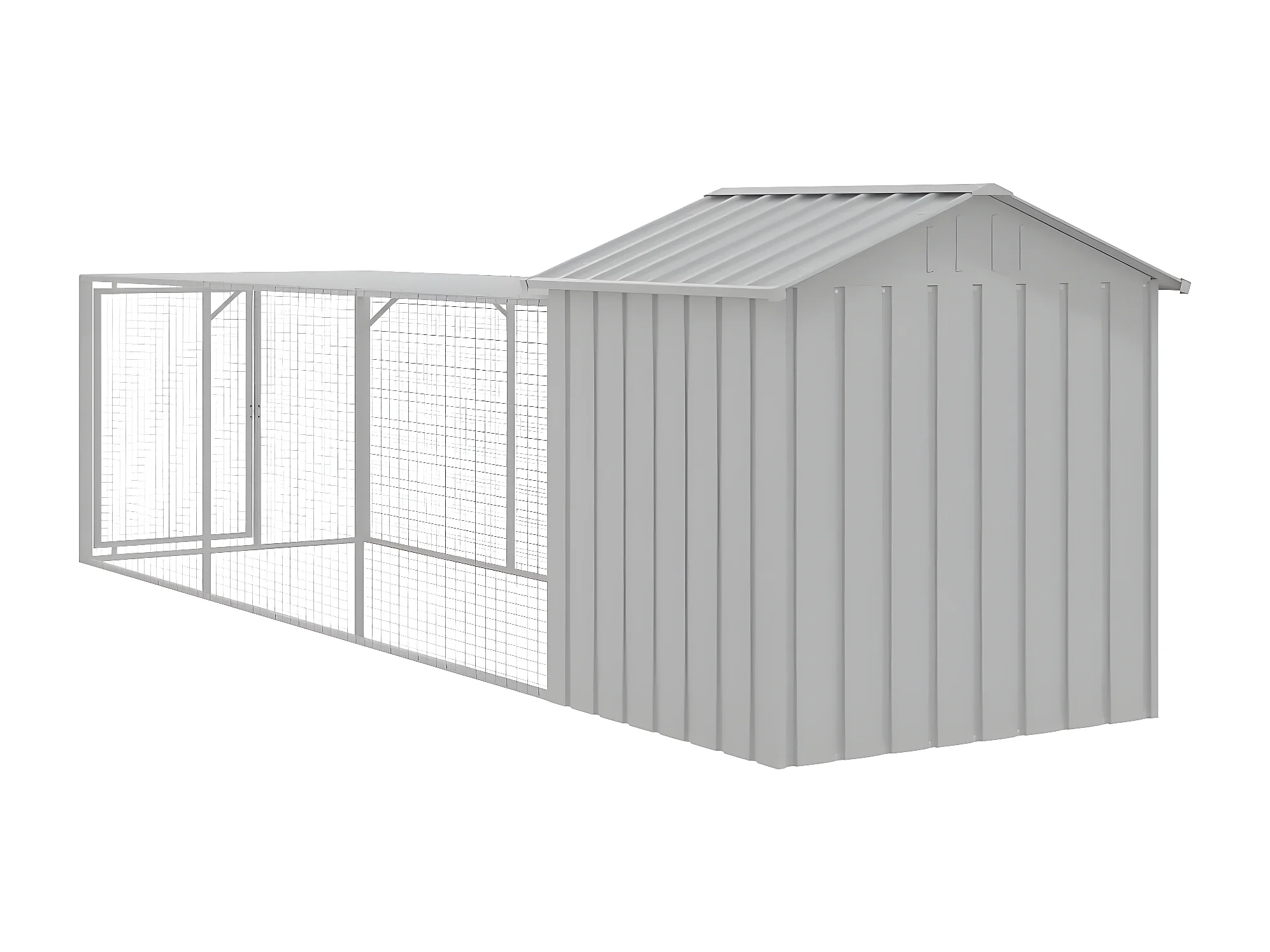 Poulailler avec cour gris clair 117x405x123 cm acier galvanisé RG3Q19358