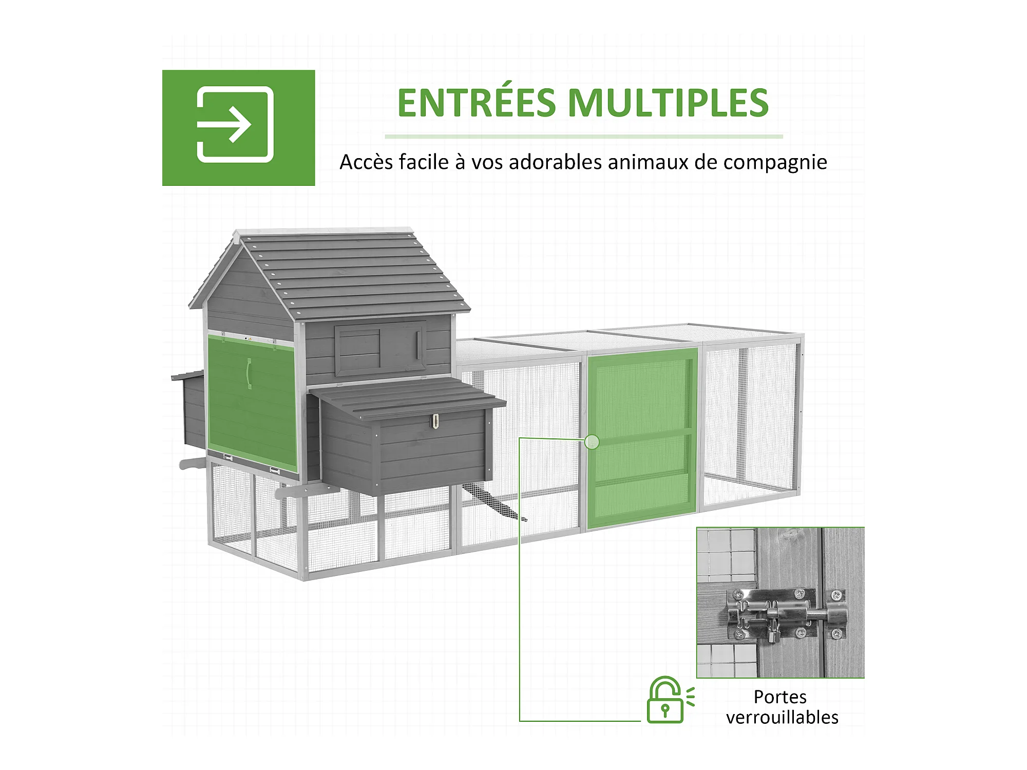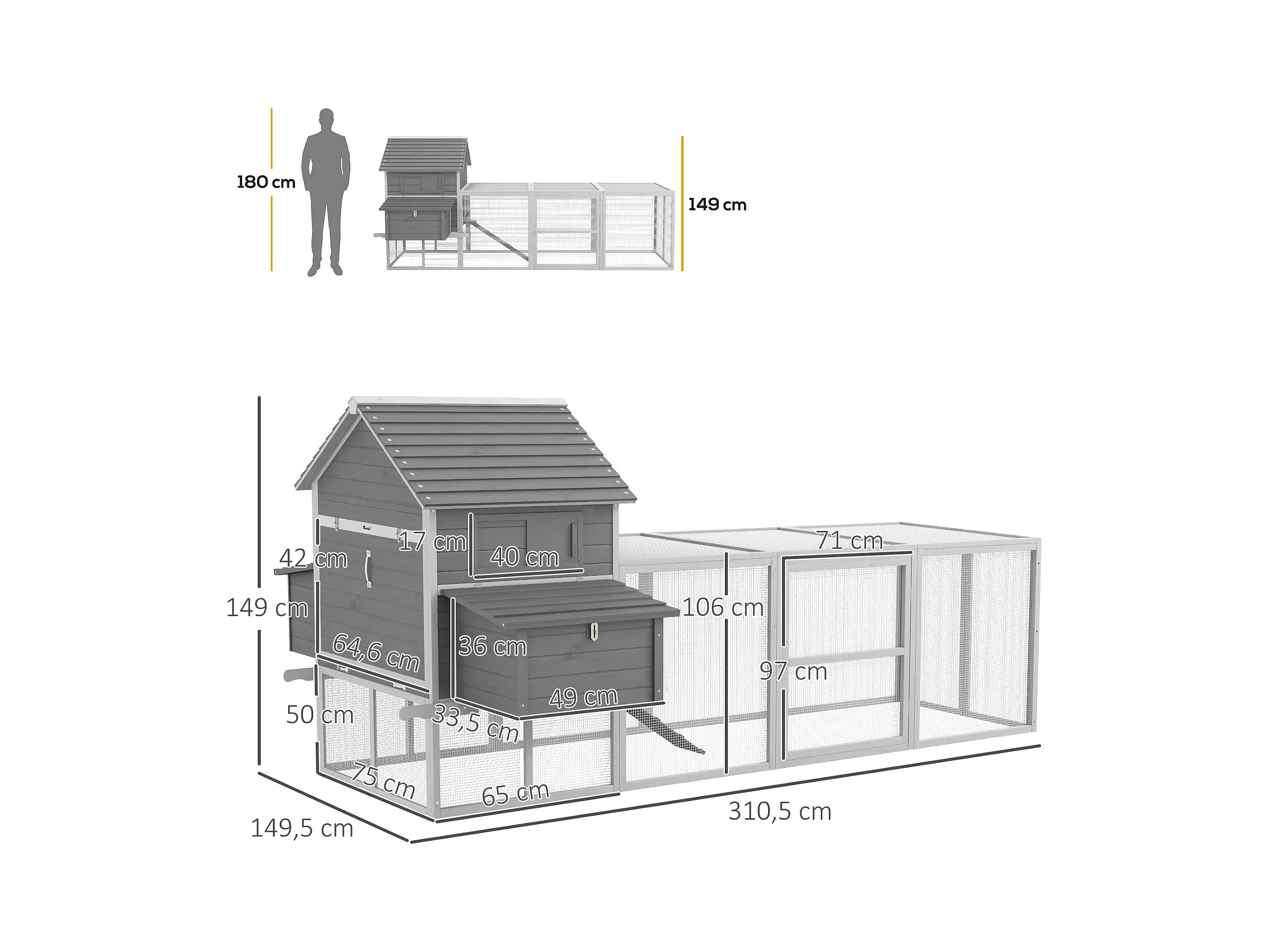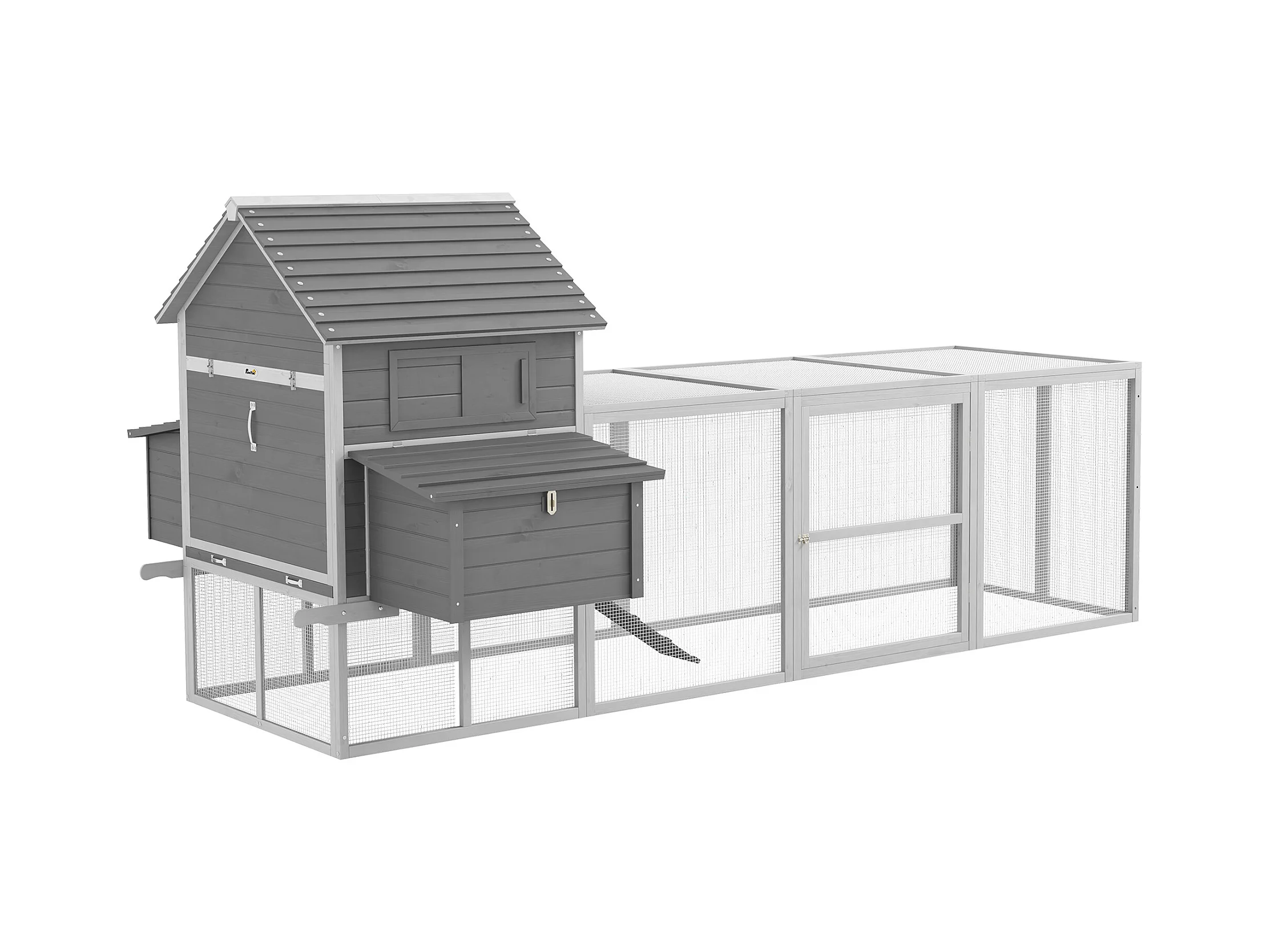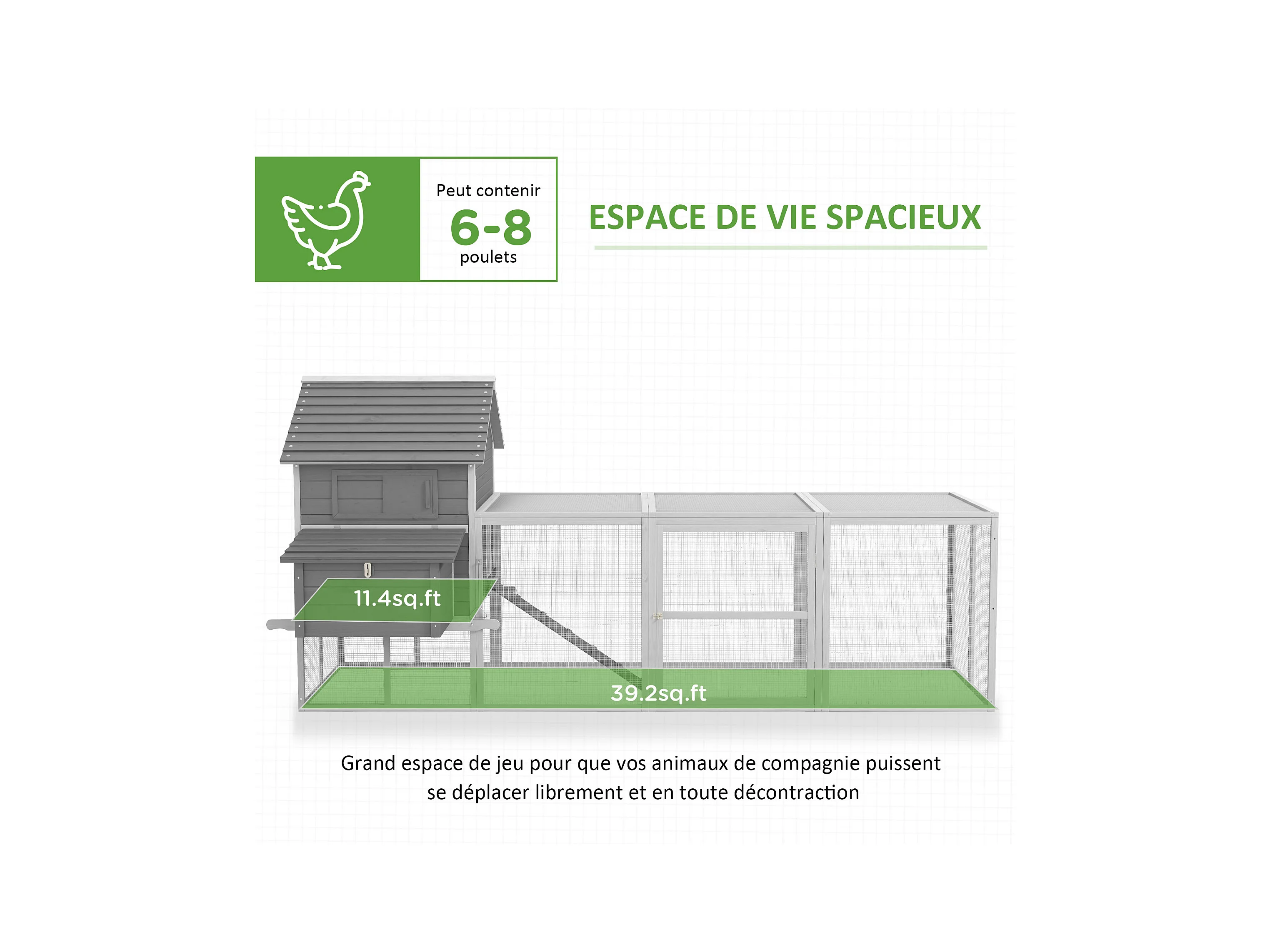 Poulailler cottage cage à poules sur pied dim. 310L x 149l x 149H cm multi-équipement bois sapin gris