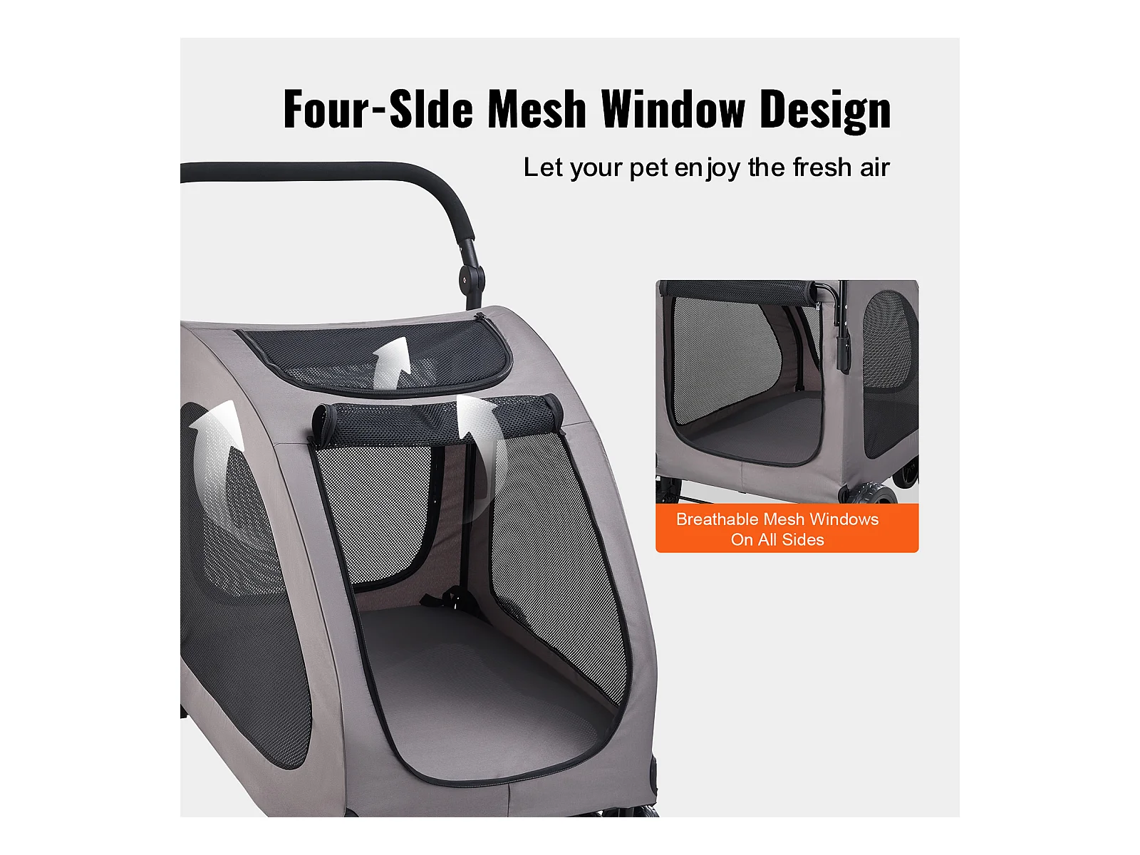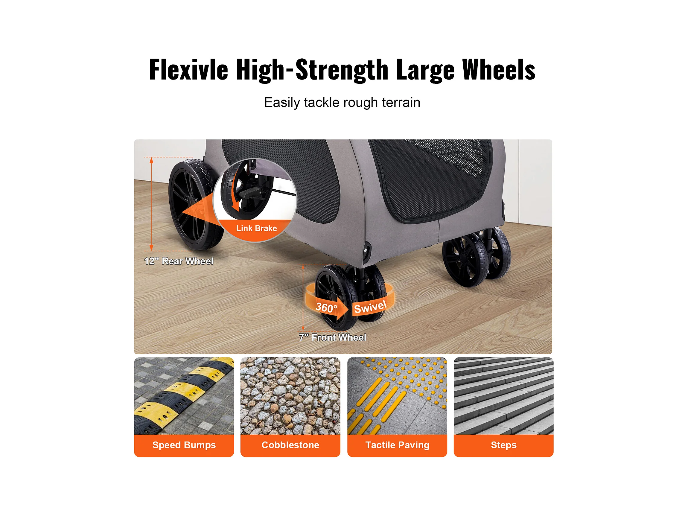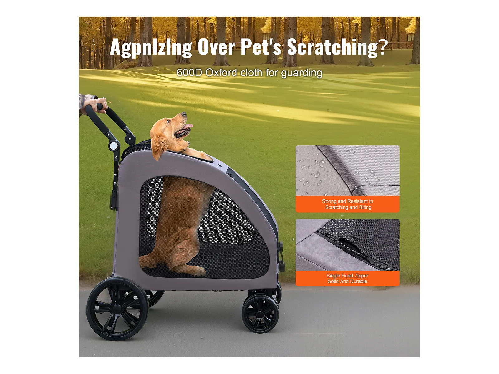 Poussette pour Chien SucceBuy, 4 Roues avec Freins, Capacité de Charge 73 kg, Hauteur Réglable, Tissu Oxford 600D