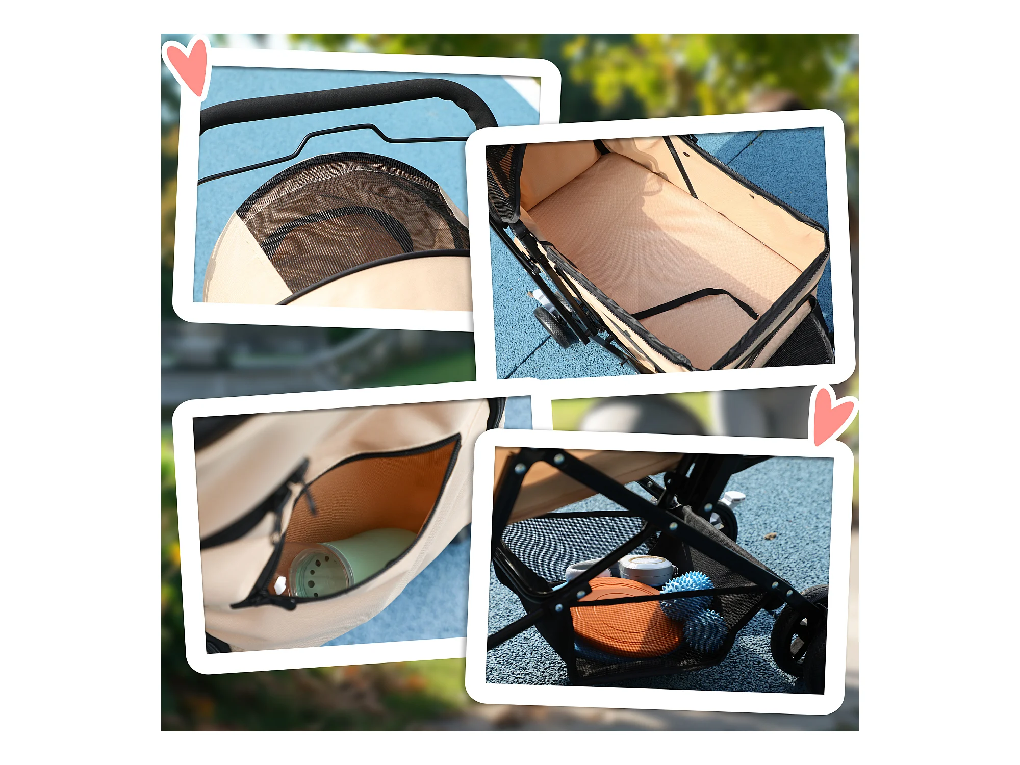 Poussette buggy pour chien chat animaux roue avant pivotante 360 degrés marron