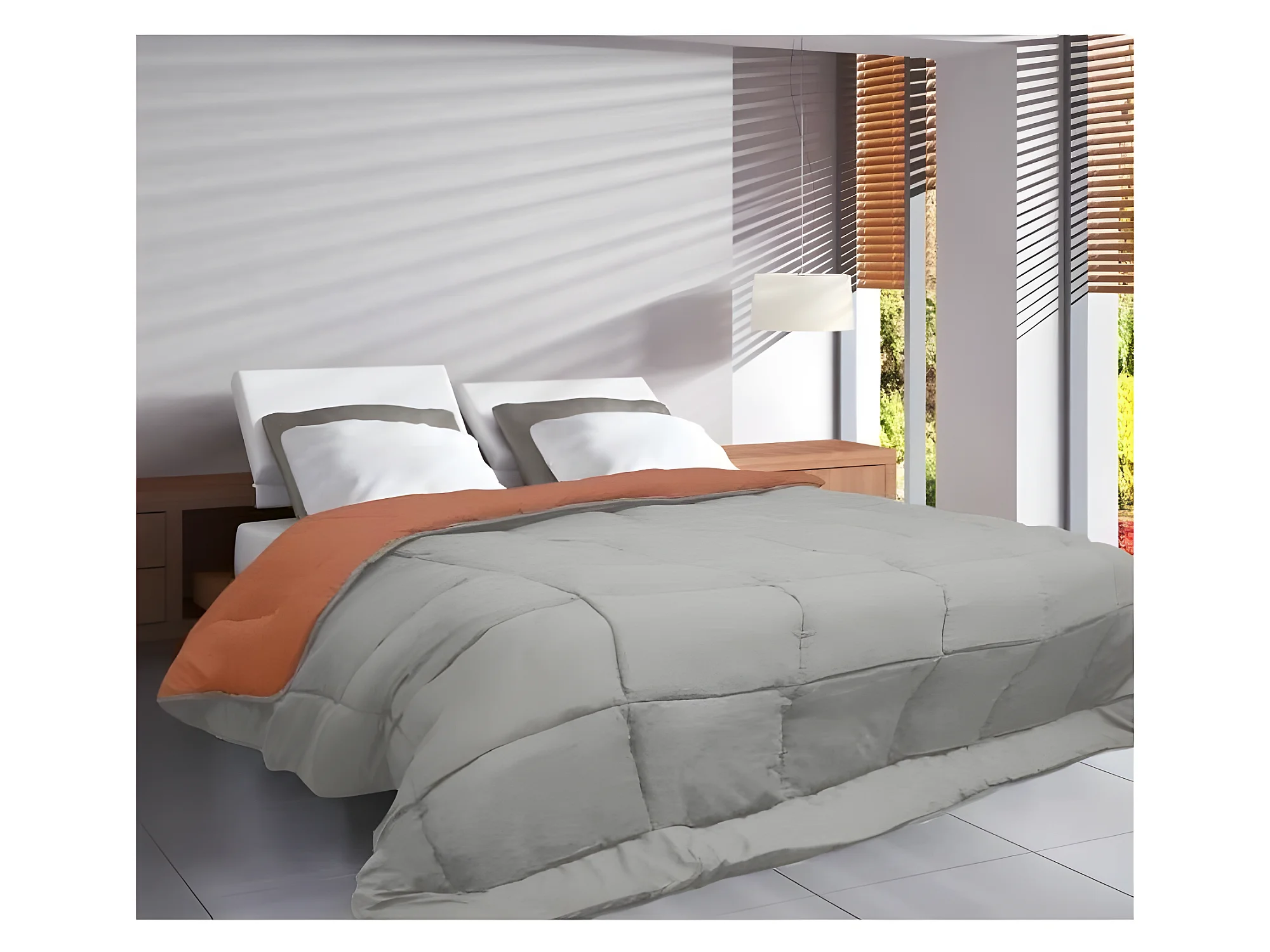 CALGARY Couette chaude Microfibre 400g/m2 Galet + Lac 240x260cm