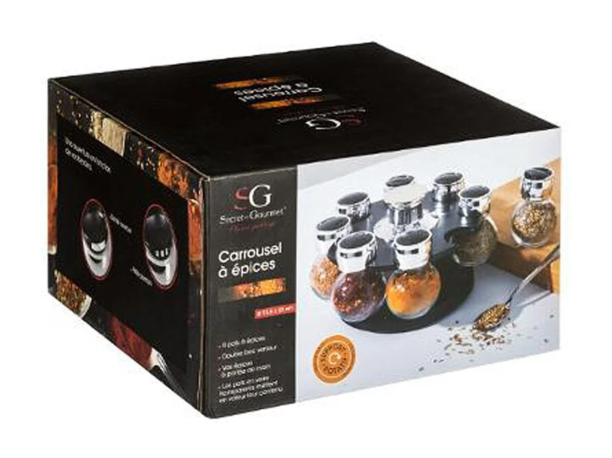 Présentoir à Épices Rotatif "Fioles" 8 Pots Noir