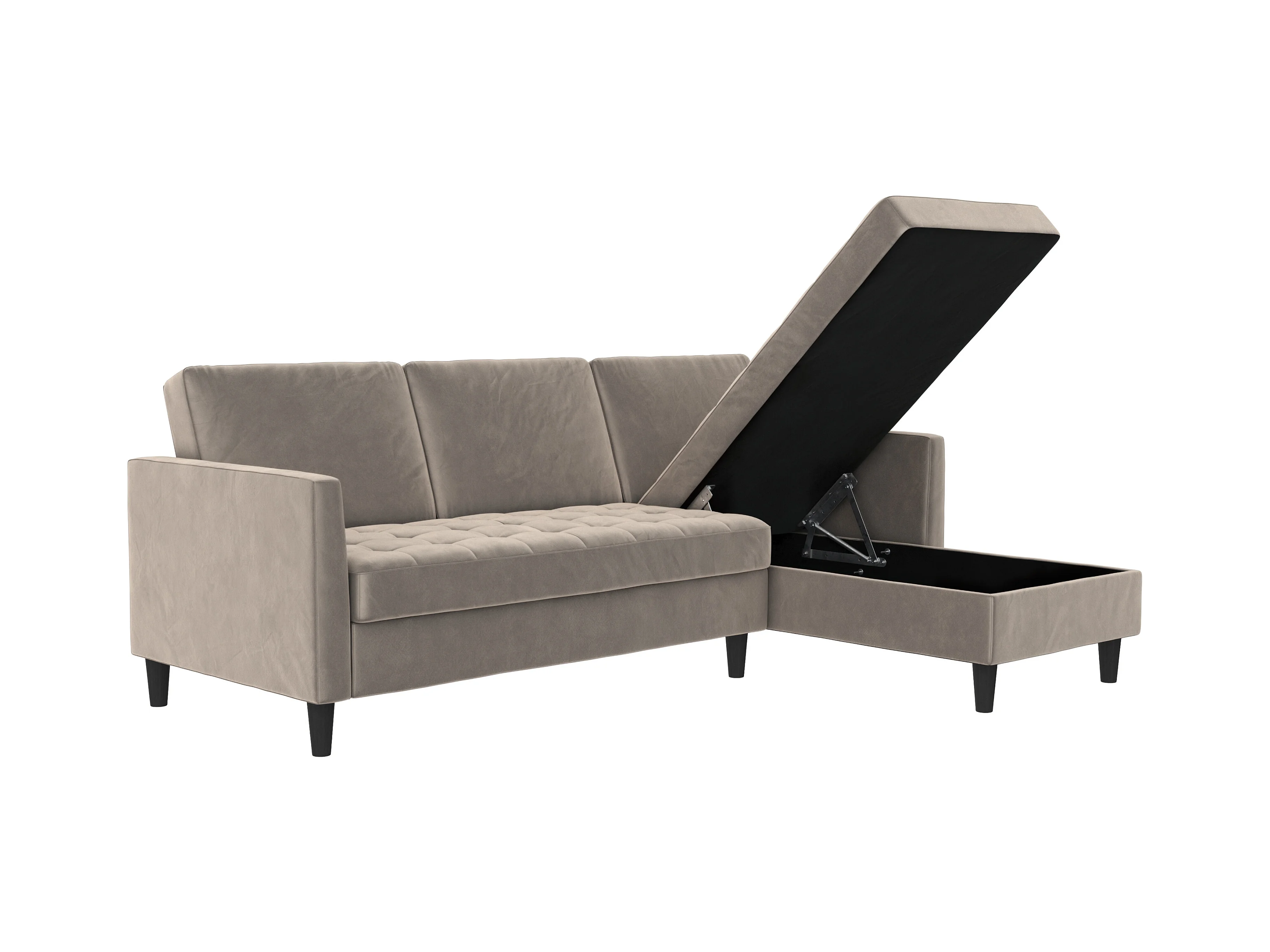 Presley | Canapé convertible 3 places avec méridienne en velours taupe