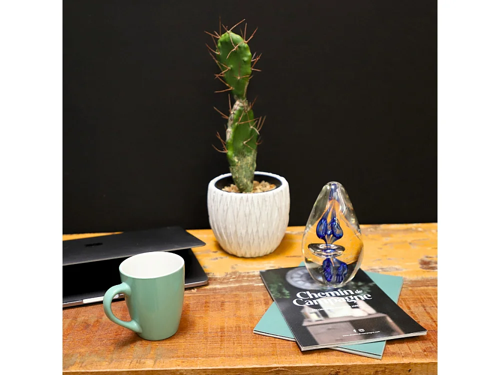 Presse papier sulfure Bulles en verre bleu 14 x 8.5 cm