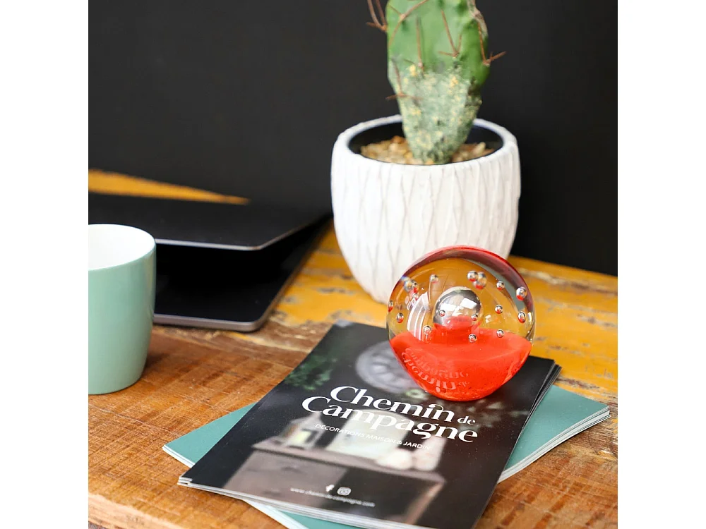 Presse papier sulfure "Mer" en verre orange Ø.8 cm