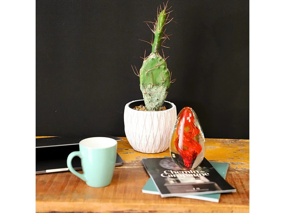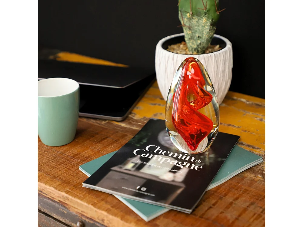 Presse papier sulfure "Flammes" en verre rouge 10 x 6 cm