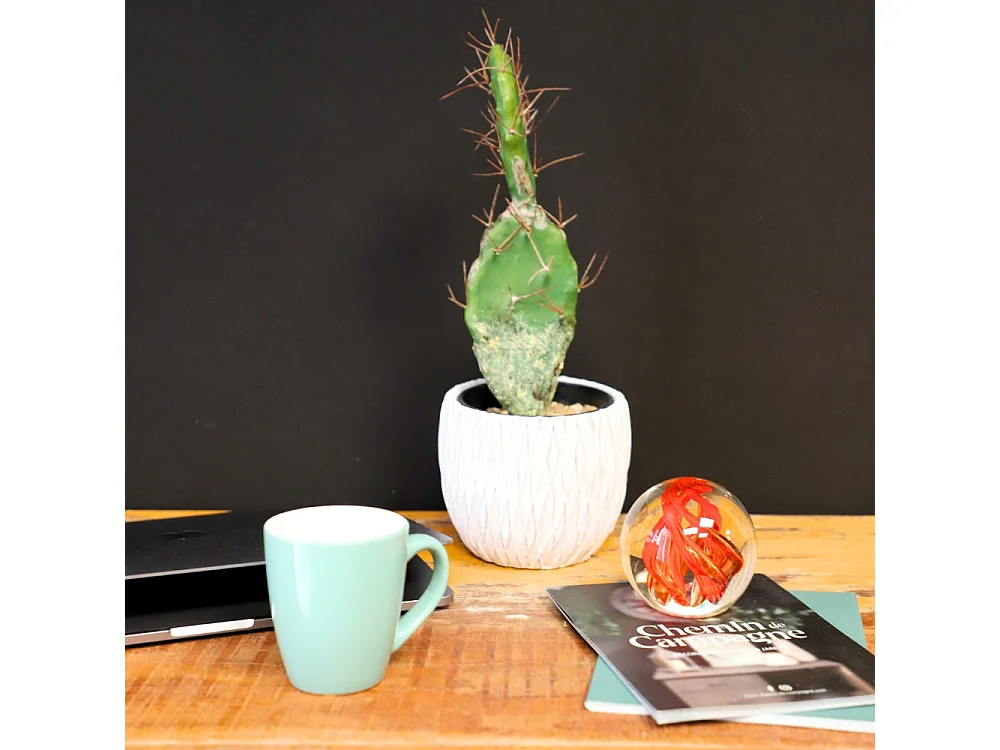 Presse papier sulfure en verre rouge Ø.10.5 cm