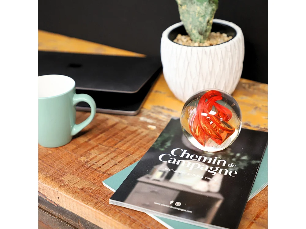 Presse papier sulfure "Flammes" en verre rouge Ø.8 cm