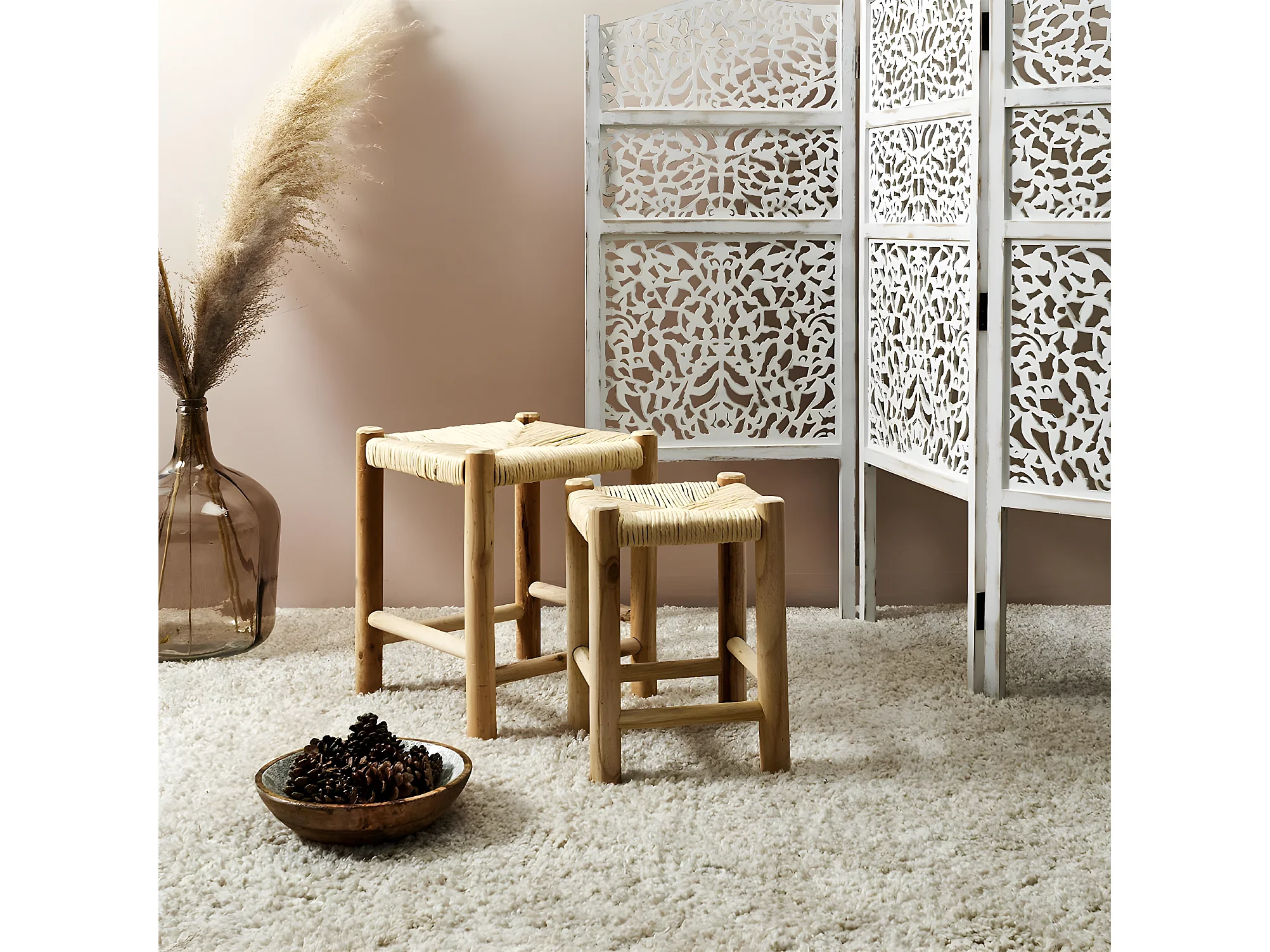 PRISIO - Tabourets Gigognes Tressés en Bois de Paulownia