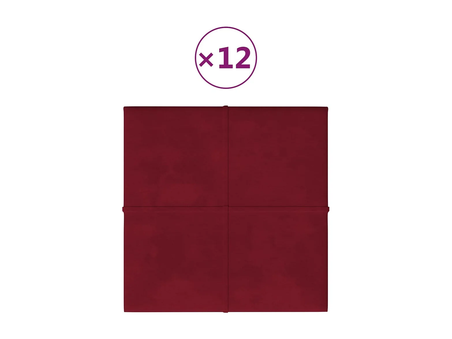 Boet Panneaux muraux 12 pcs Rouge bordeaux 30x30 cm Velours 1,08 m²
