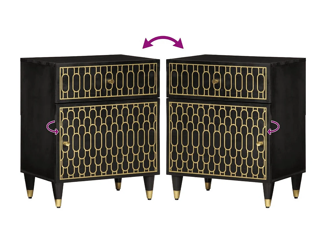 Yilmaz Table de chevet noir 50x33x60 cm bois de manguier massif