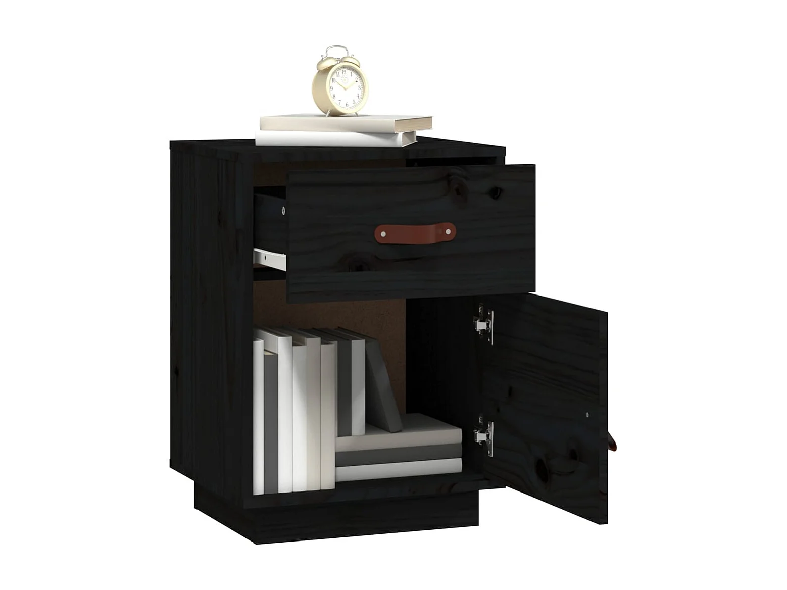 Yaldir Table de chevet Noir 40x34x55 cm Bois de pin solide