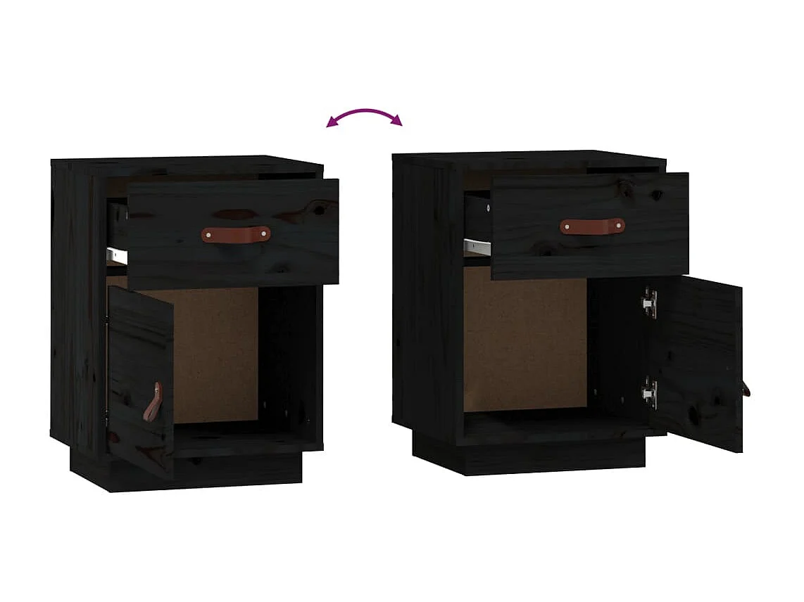 Lydar Table de chevet Noir 40x34x45 cm Bois de pin massif