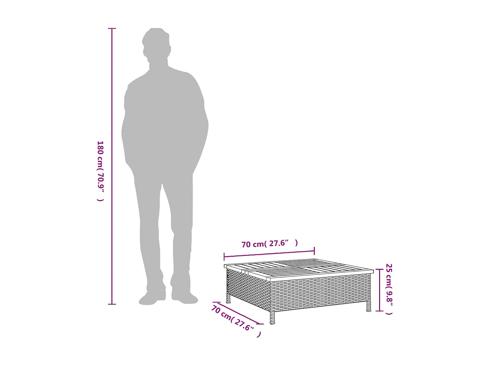 Katja Table de jardin gris 70x70x25 cm résine tressée et bois acacia