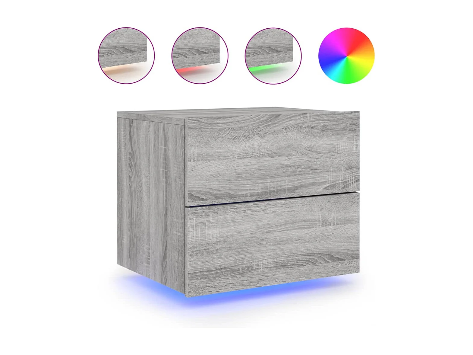 Prolenta Premium - Tables de chevet murales avec lumières LED 2 pcs sonoma gris