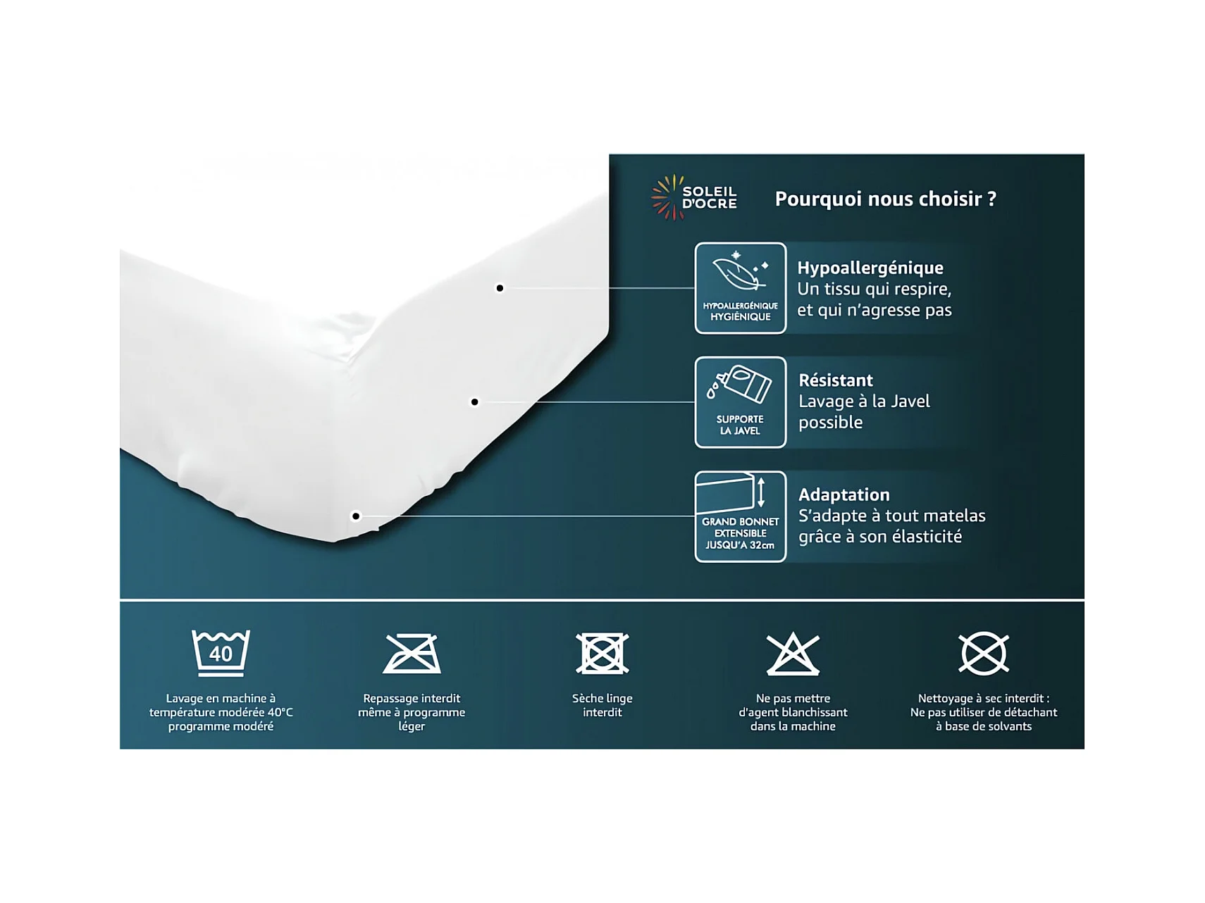 Protège matelas 80x200 cm en coton MOLLETON forme drap housse, par Soleil d'ocre