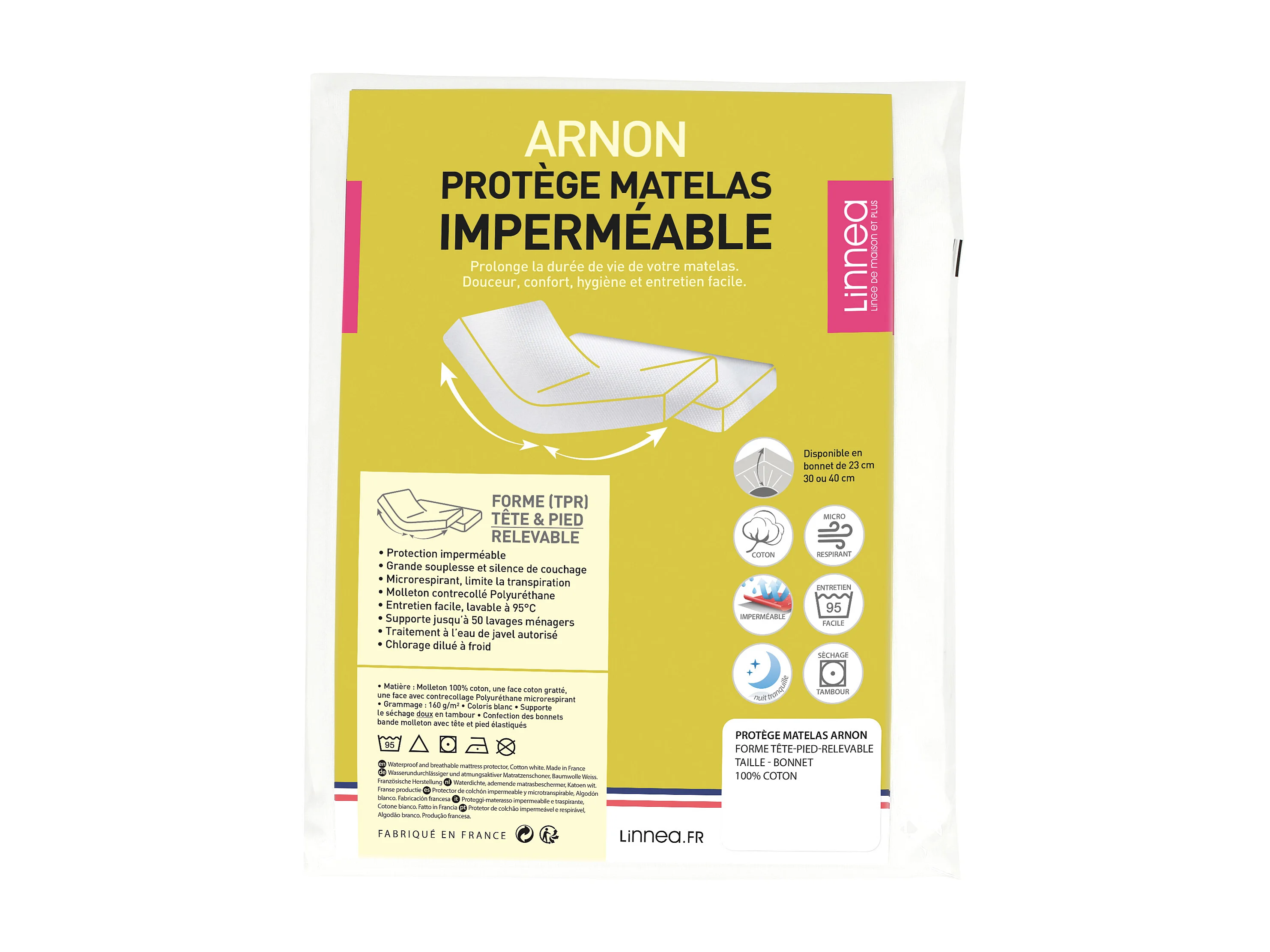 Protège matelas imperméable 2x90x200 cm lit articulé TPR bonnet 23cm ARNON molleton coton contrecollé polyuréthane