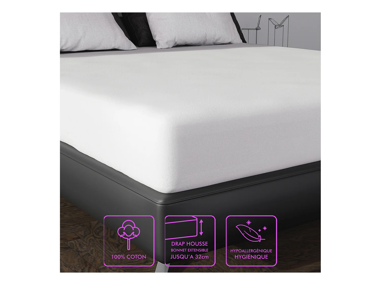 Drap housse uni 140x190 cm bonnet 30 cm coton ALTO Blanc